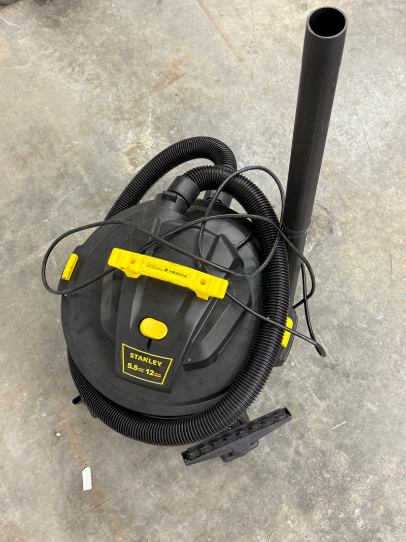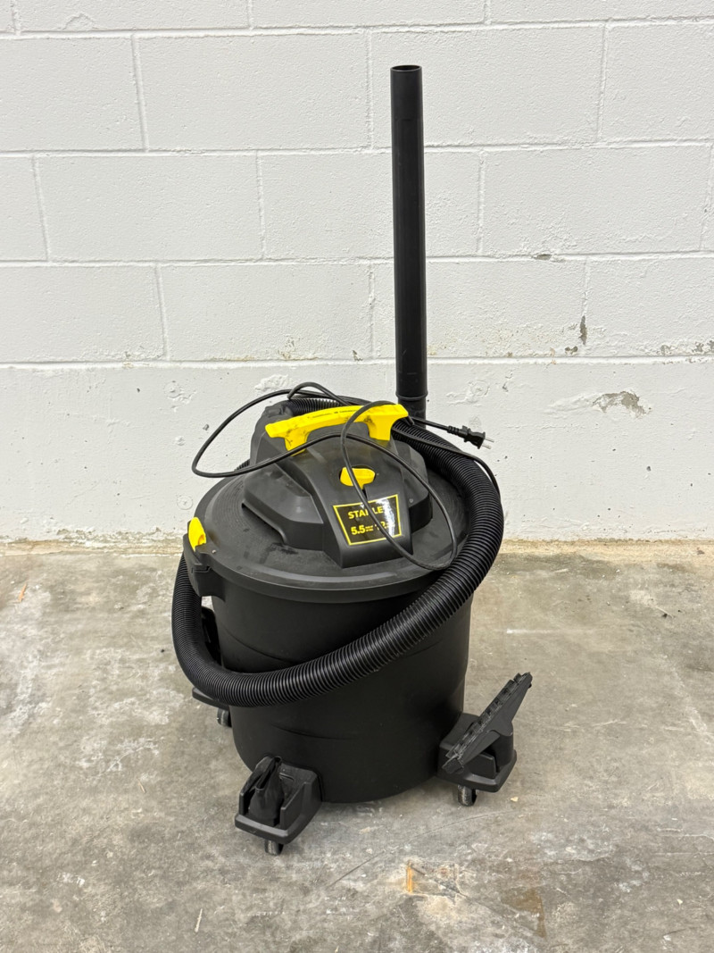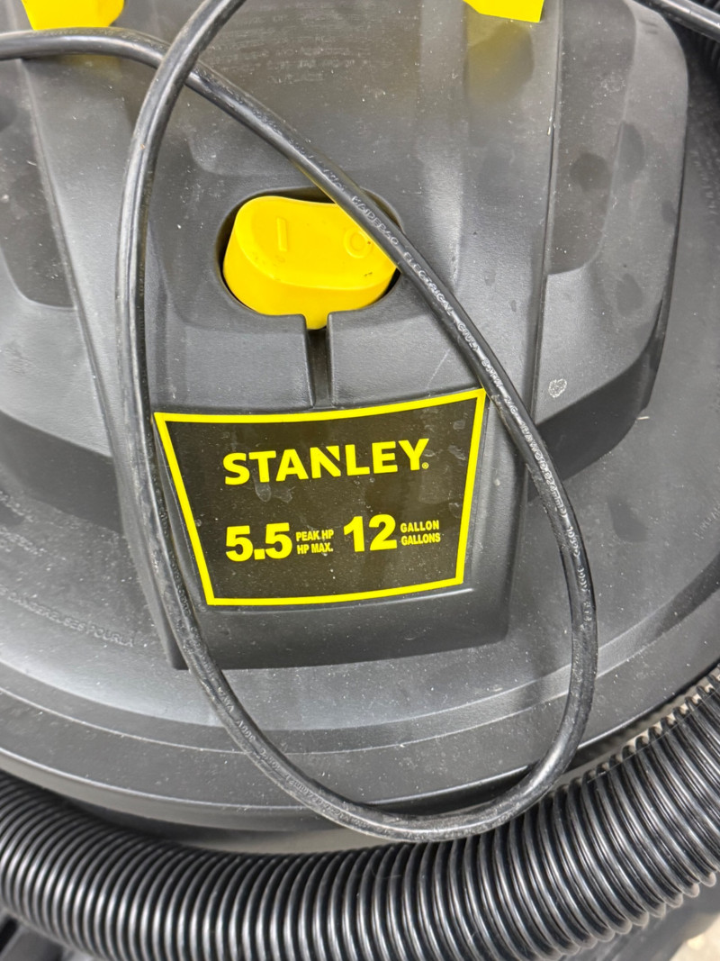 Tackle any mess—big or small—with this Stanley 5.5 HP Wet/Dry Shop Vacuum, built for both heavy-duty jobs and everyday cleanups. Designed with a powerful motor, large capacity, and durable rolling base, it’s a reliable workhorse for the garage, workshop, or job site. Features include: 5.5 peak HP motor for strong suction power Durable 12-gallon tank for both wet and dry debris Flexible hose and extension wand for reaching tough spots Mounted on a rolling base with casters for easy mobility Includes attachments for multi-surface cleaning Measurements: