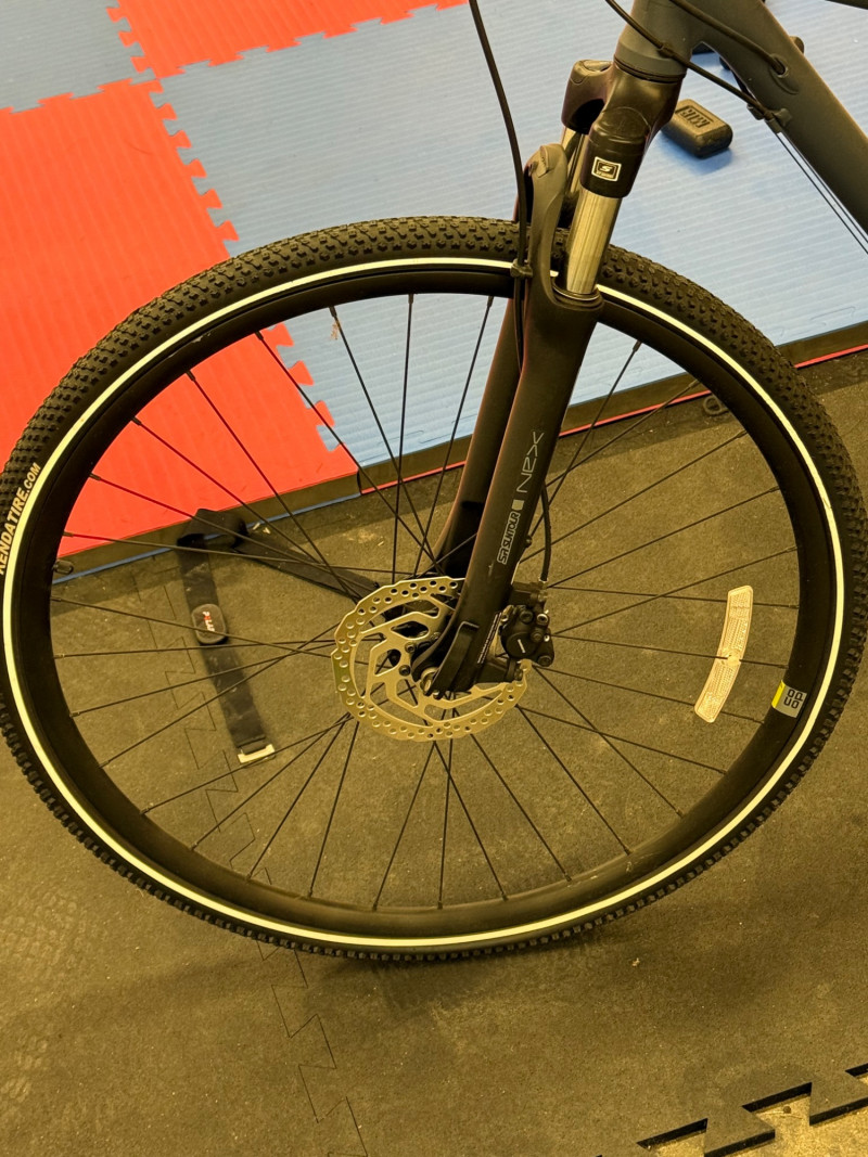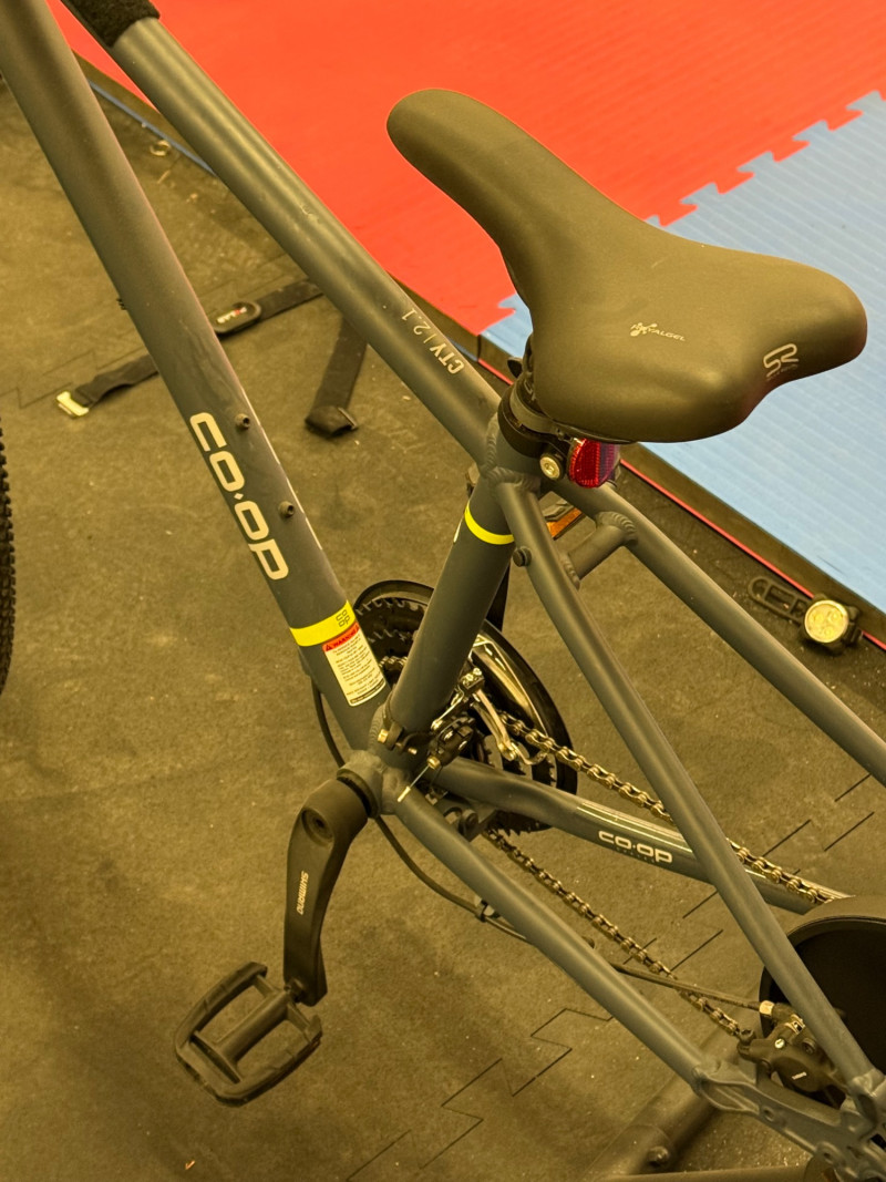 Ride year-round with this versatile Co-op CTY 2.1 mounted on a stationary trainer. Perfect for indoor training during bad weather and outdoor use once things clear up, this setup gives you flexibility and utility. The trainer offers smooth pedaling feel, while the bike is ready to hit the road when needed. Details: Bike Brand / Model: Co-op CTY 2.1 (hybrid / commuter style) Trainer Included: Yes — compatible with the bike’s rear wheel Condition: Good (wear consistent with usage) Approx. Dimensions: Frame ~32" H × 68" L × 24" W (trainer adds footprint) Estimated Value: New MSRP of Co-op CTY 2.1: $799
