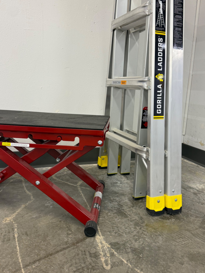 Perfect for the DIYer, mechanic, or home improver. The Gorilla Ladder gives you flexibility for any height task, while the lift table makes repairs and assembly much easier.