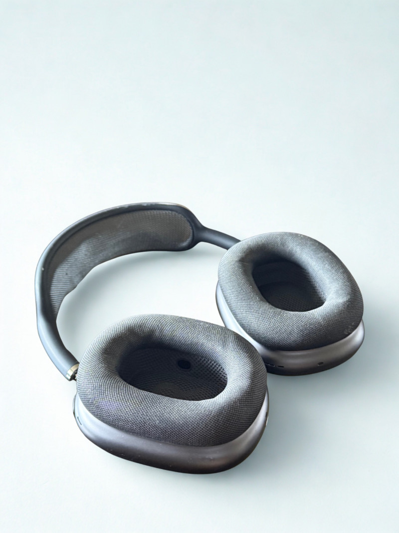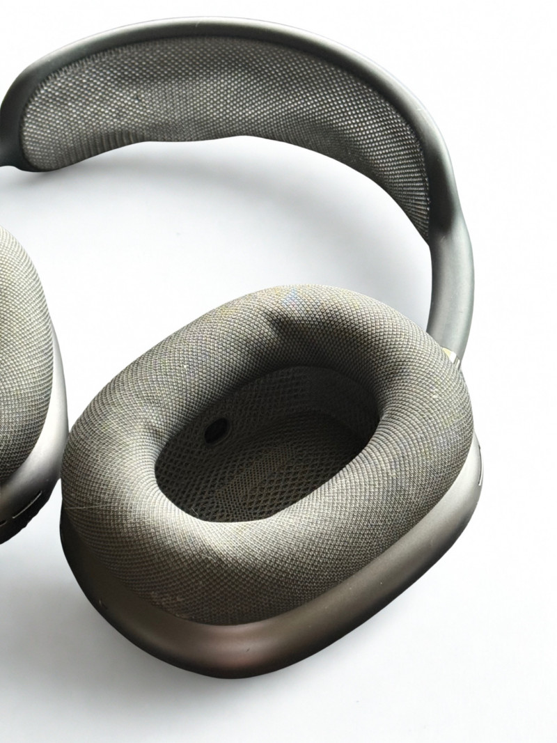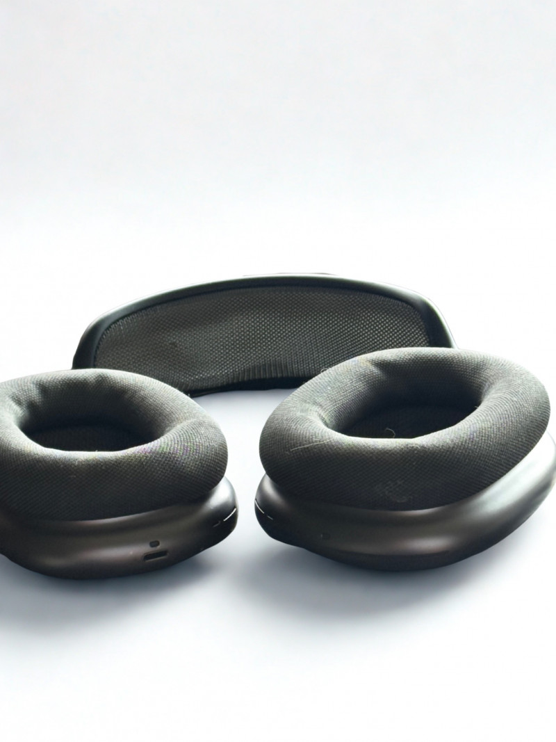 Premium over-ear wireless headphones by Apple, offering industry-leading Active Noise Cancellation, Transparency Mode, and high-fidelity audio. Features memory foam ear cushions, stainless steel frame, and breathable knit mesh canopy for comfort during extended listening. Compatible with iPhone, iPad, Mac, and other Bluetooth-enabled devices. Condition: Lightly used, ear cushions show some wear (see photos). Functionality untested but appears complete. No charger cord included.