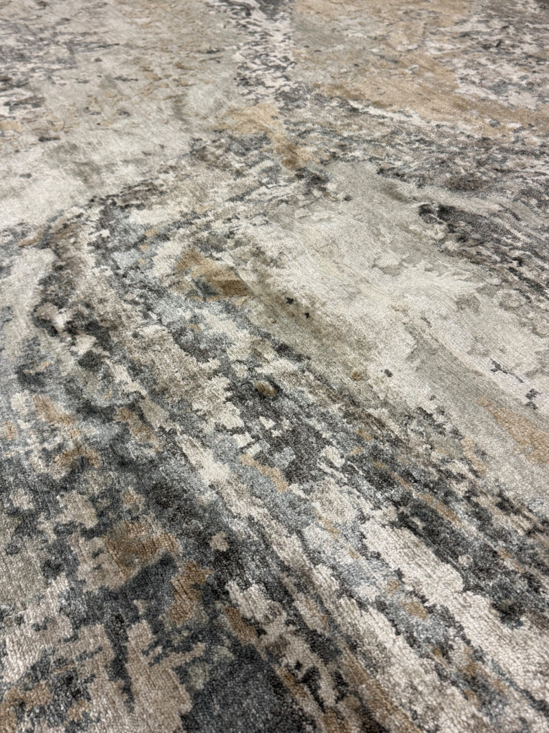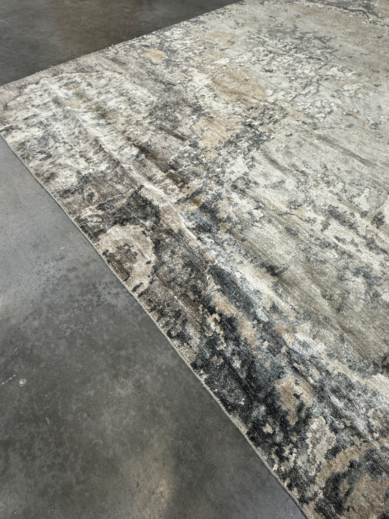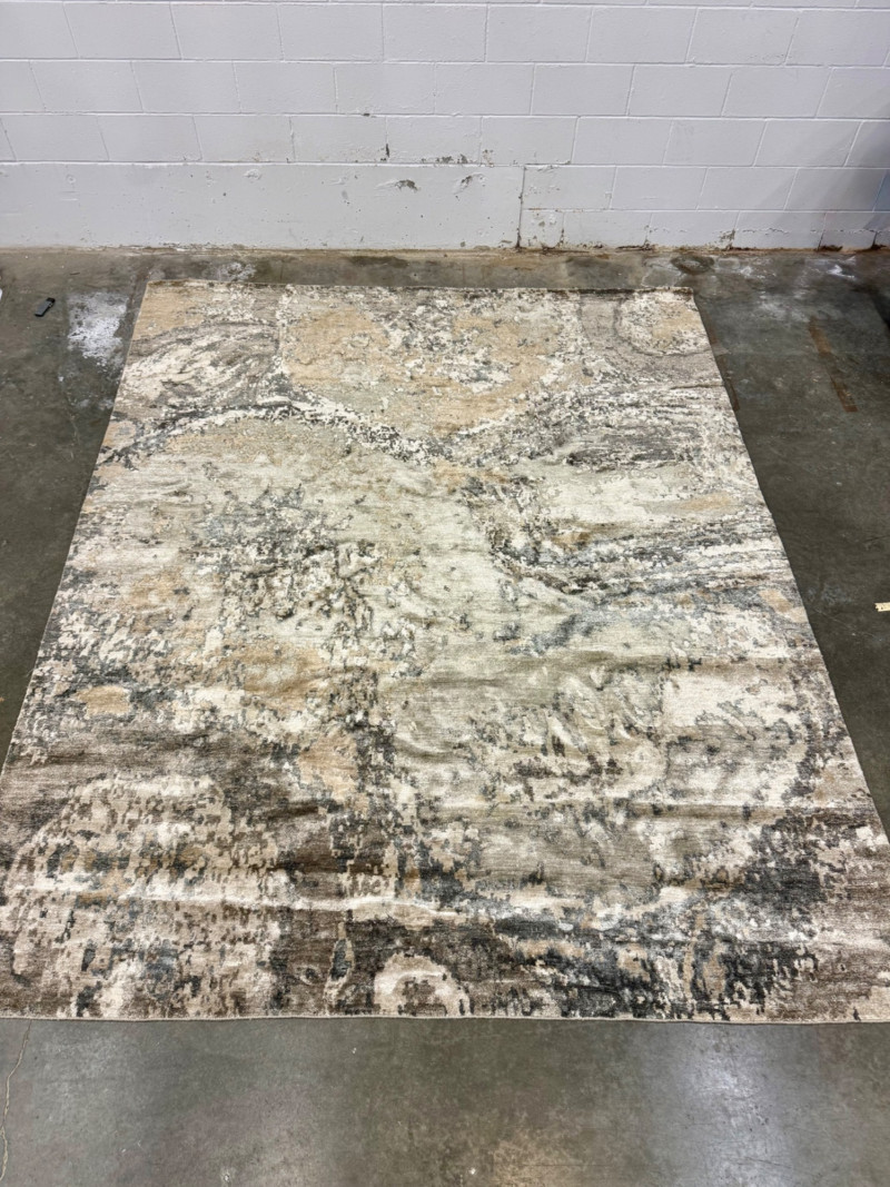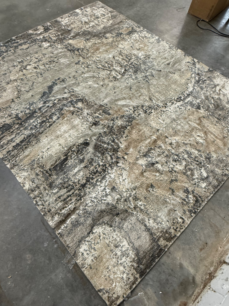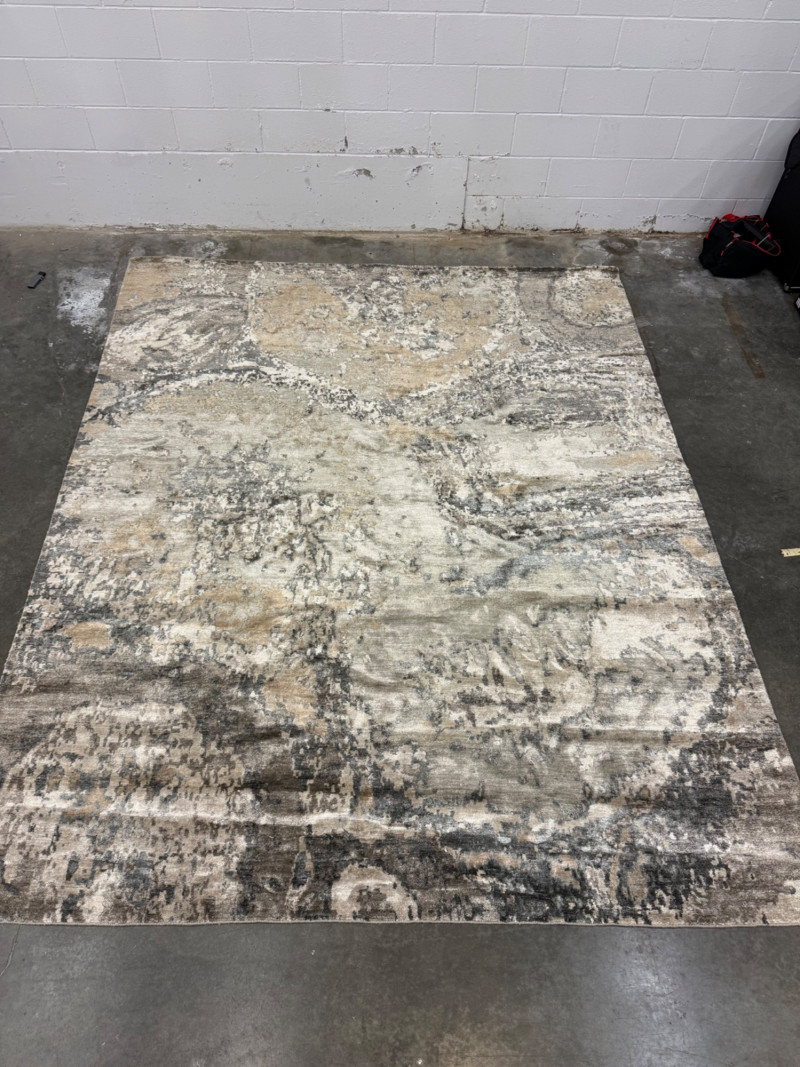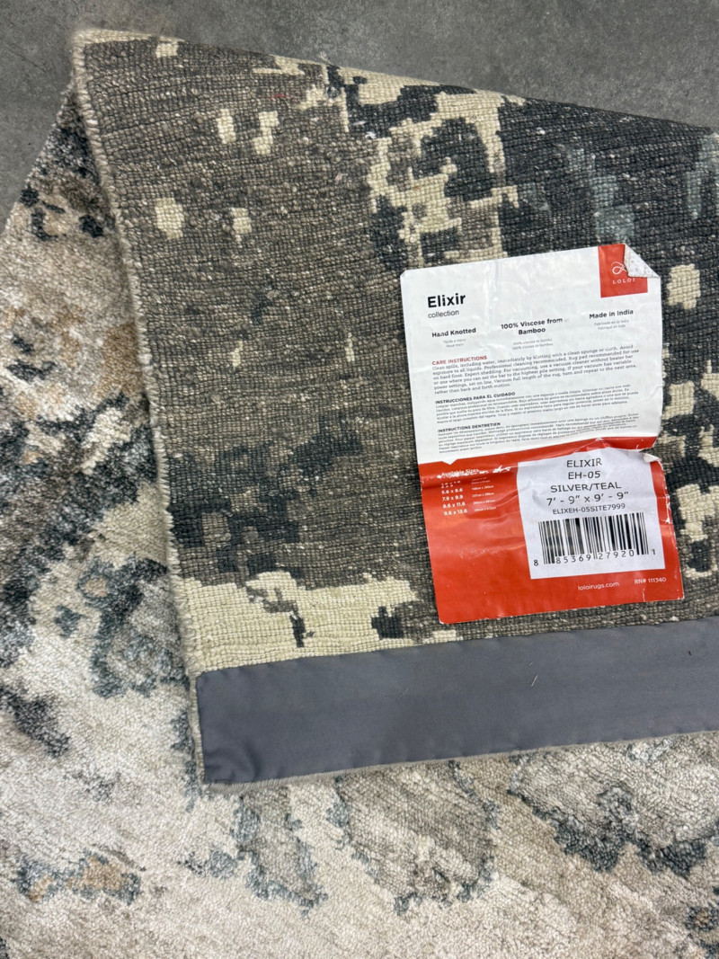 Loloi Elixir Collection – Hand-Knotted Rug (Silver/Teal) Size: 7’9” x 9’9” Material: 100% bamboo viscose Technique: Hand-knotted Colorway: Silver/Teal with multi-tonal variations Condition: Excellent Comparable retail value: $13,000 This rug is a statement piece for collectors and design enthusiasts, perfect for anchoring a living room, dining room, or executive office with elegance and artistry.