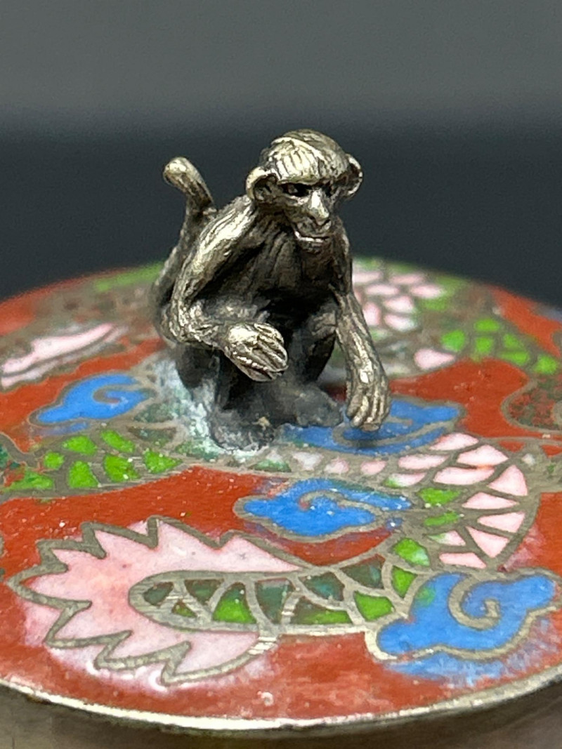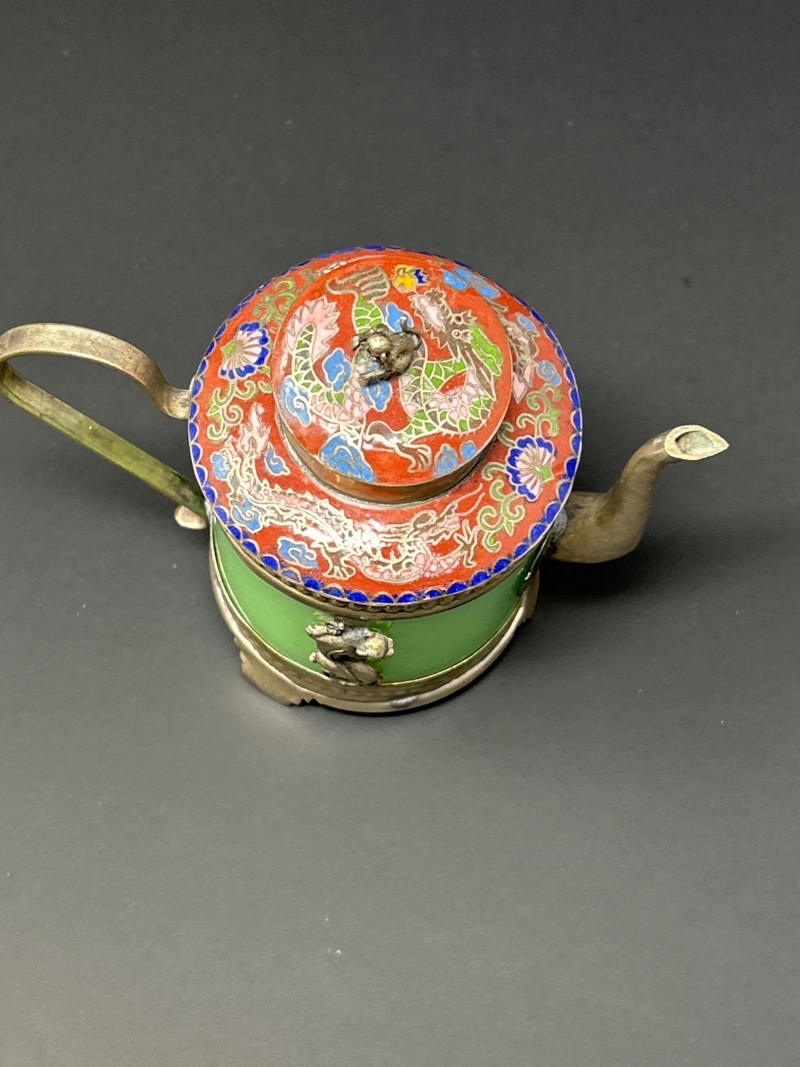 Lot # 5 - Qing Dynasty Cloisonné-Style Teapot with Monkey Finial & Dragon Handle