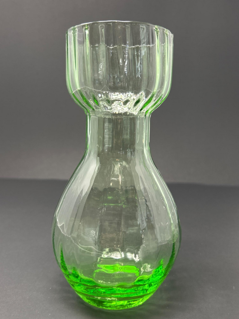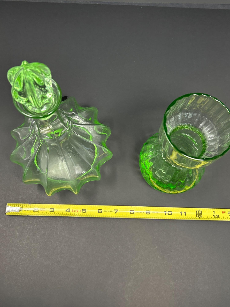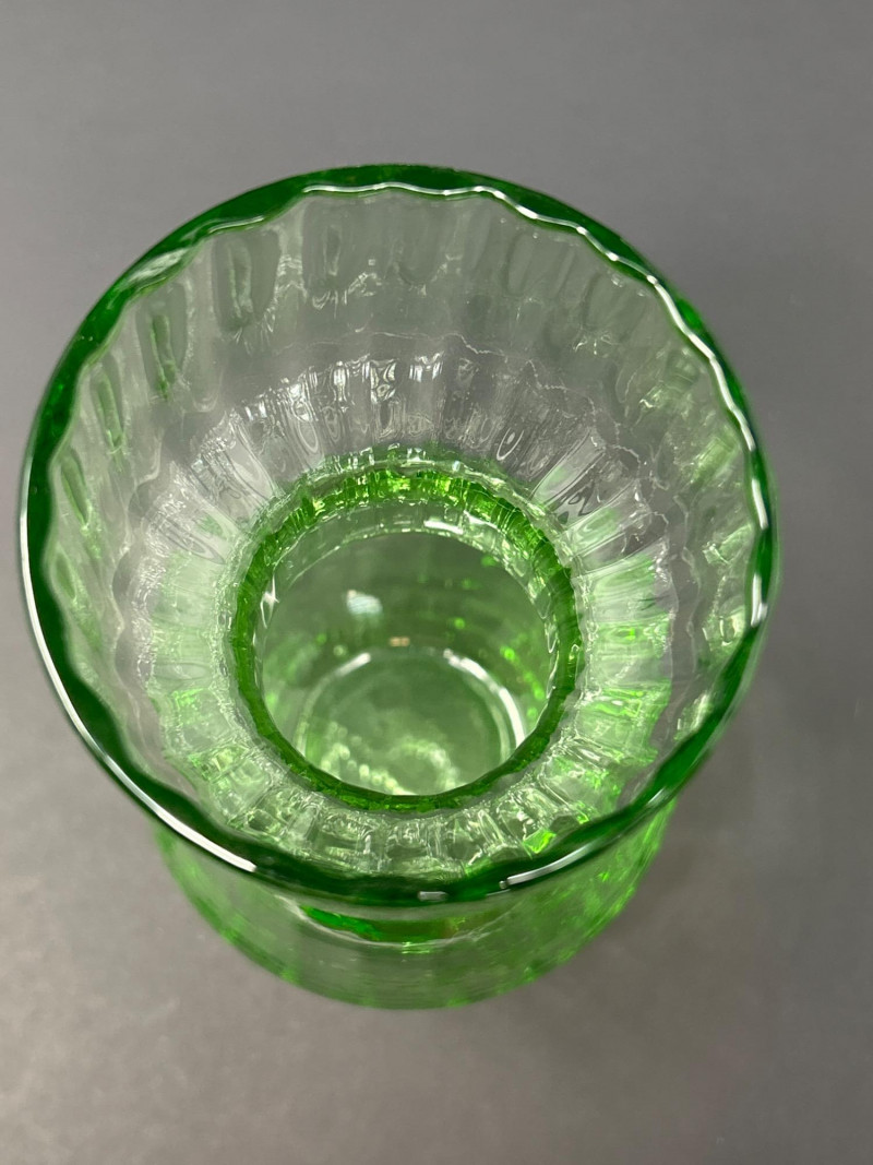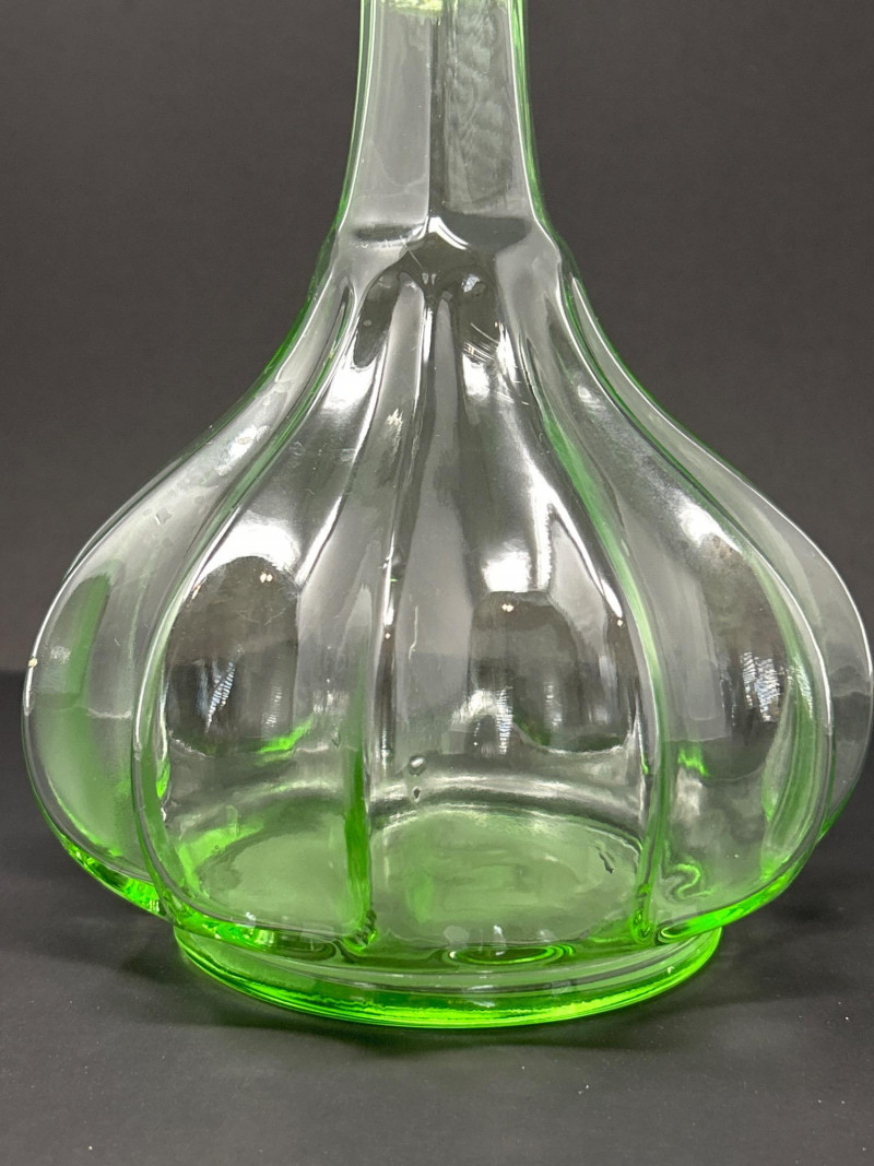 B – Vintage Green Depression Glass Carafe / Vase