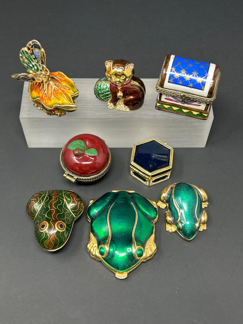 Lot # 24 - Set of Eight Enamel and Metal Perfume and Trinket Boxes