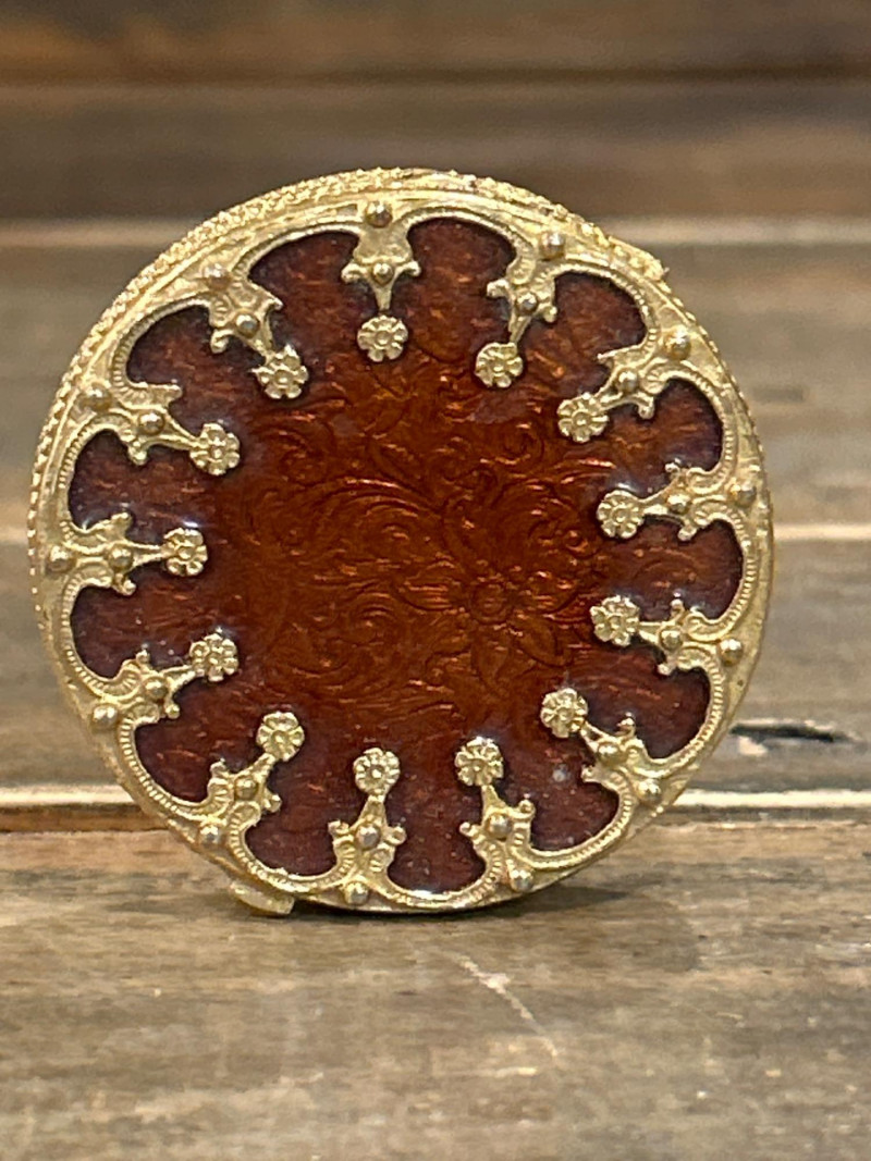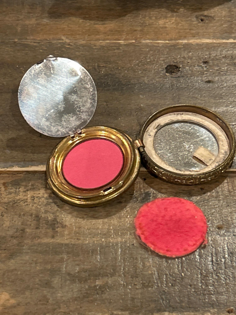 Reference: Similar model listed as “Vintage Fame Versailles Solid Perfume Chest” Collecting Note: Represents Corday’s luxurious blend of French perfume essence and American packaging artistry. F.J. Foster Jewelry Co. Filigree Rouge Compact (1930s, Providence RI)
