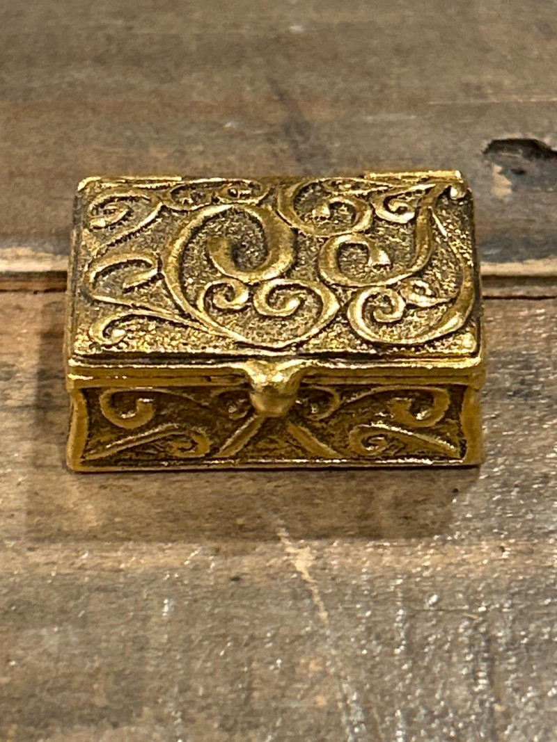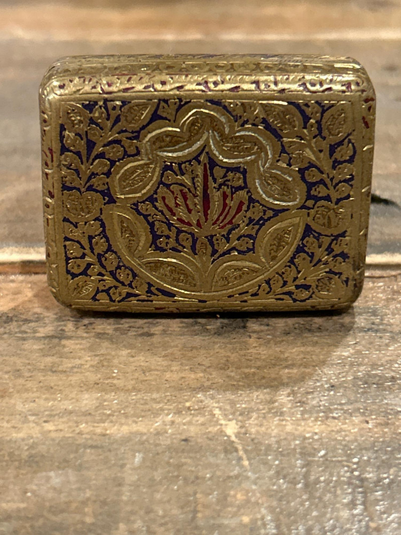 Collecting Note: Mid-century Noritake accent, ideal for vanity or display. Rectangular Gilt & Enamel Crest Box