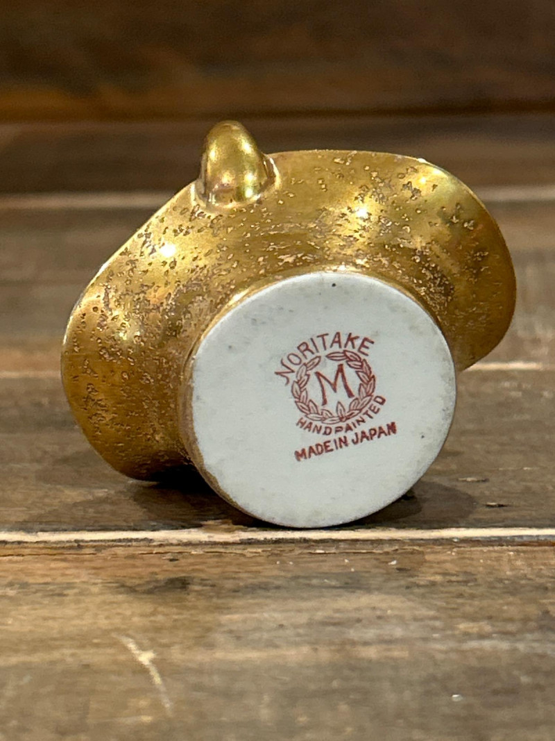 Collecting Note: Early American Art Deco vanity piece showcasing hand-pierced brass craftsmanship. Noritake Hand-Painted Gilt Ceramic Mini Basket