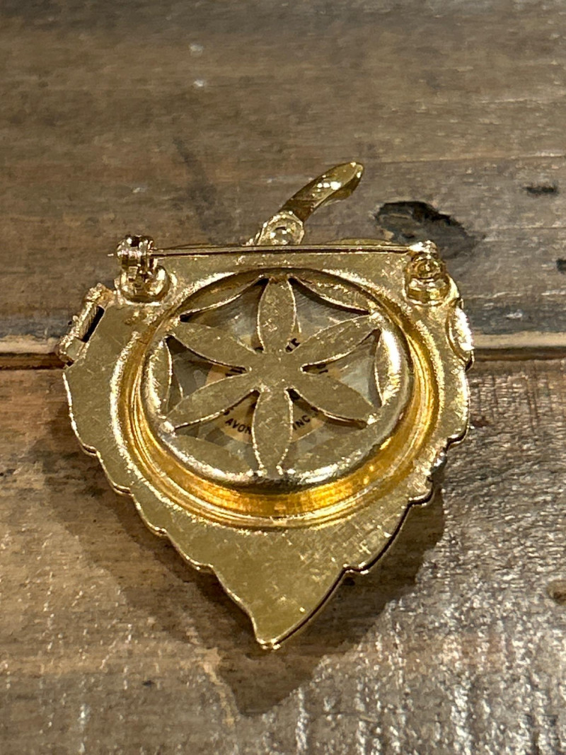 Collecting Note: A decorative Avon figural from the 1970s — graceful and display-worthy. Avon “Gold Leaf” Brooch with Faux Pearl Accent (1970s)