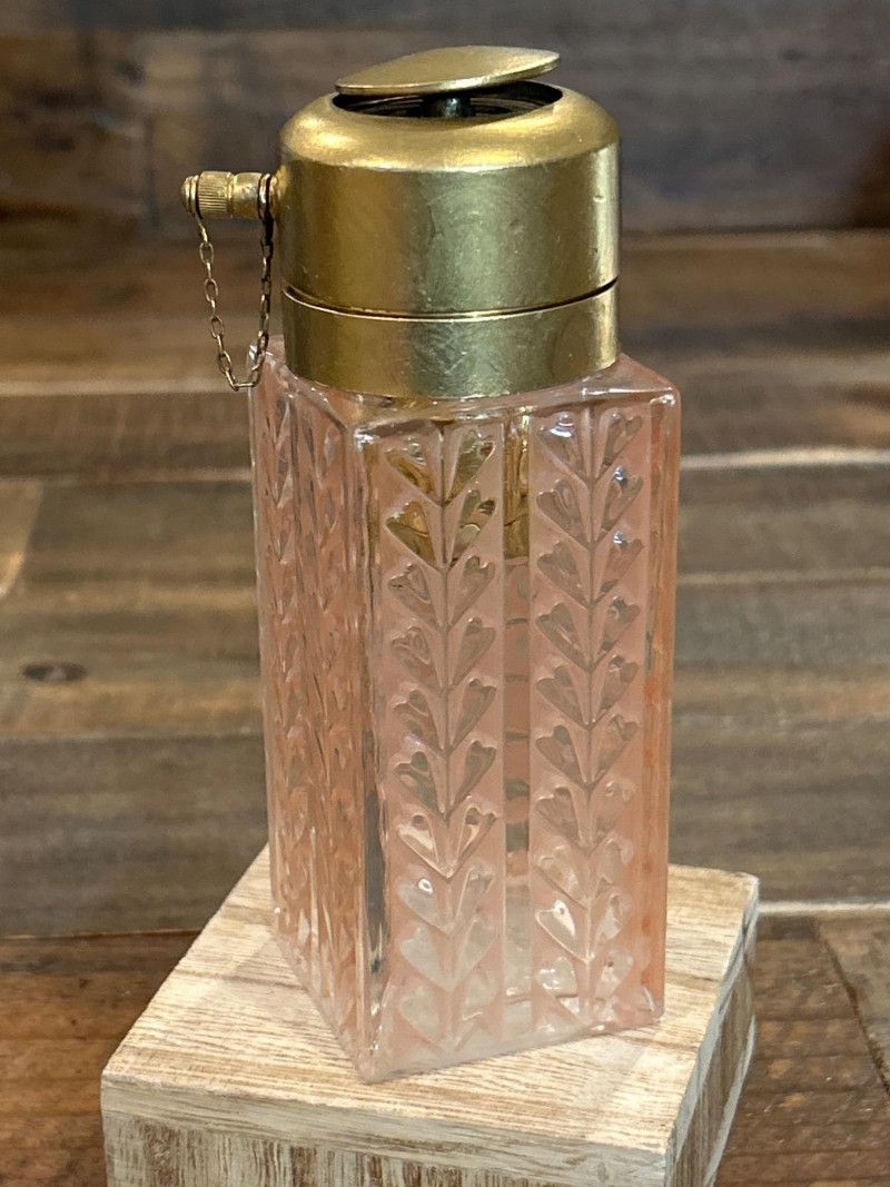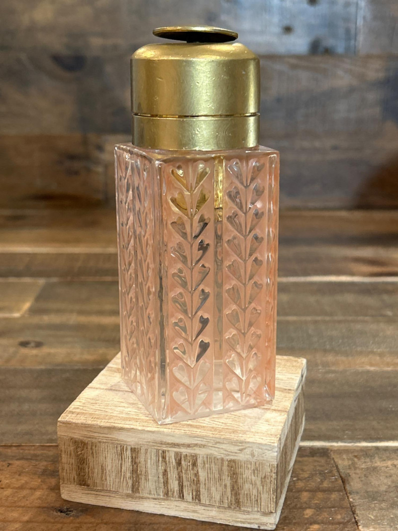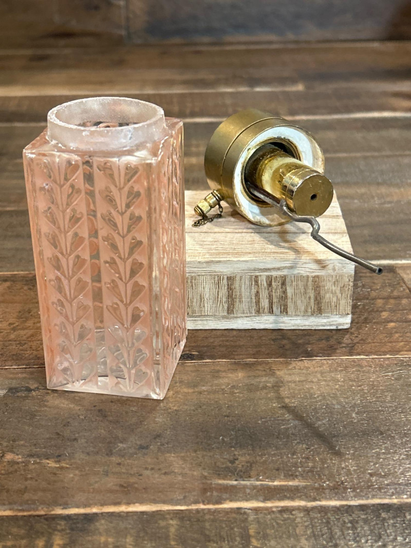 Pink Etched Perfume Bottle with Brass Top