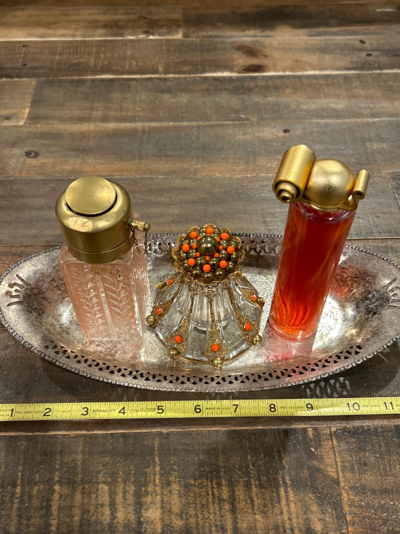 Lot # 44 - Set of Vintage Perfume Bottles with Silverplate Vanity Tray