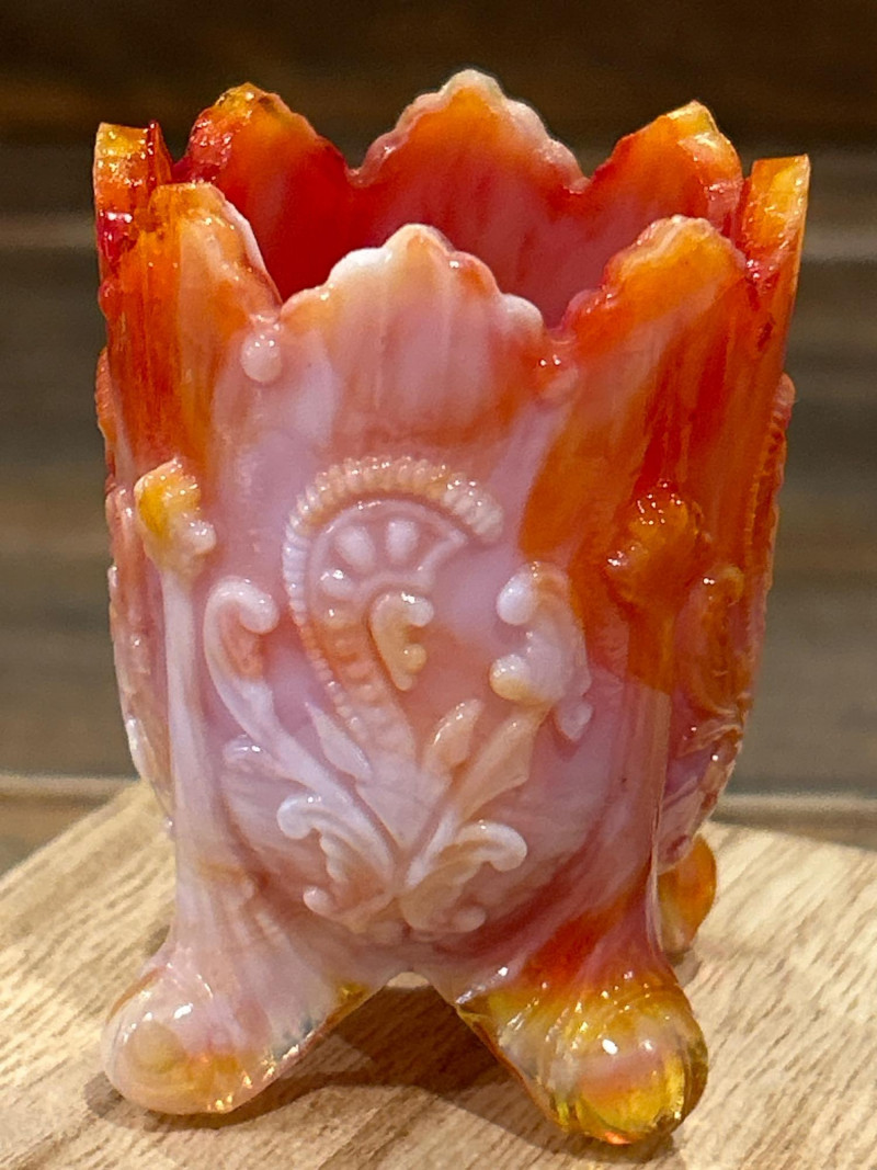 C – Orange-White Slag Glass Toothpick Holder