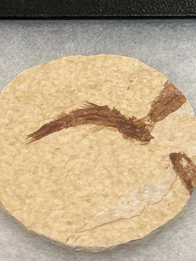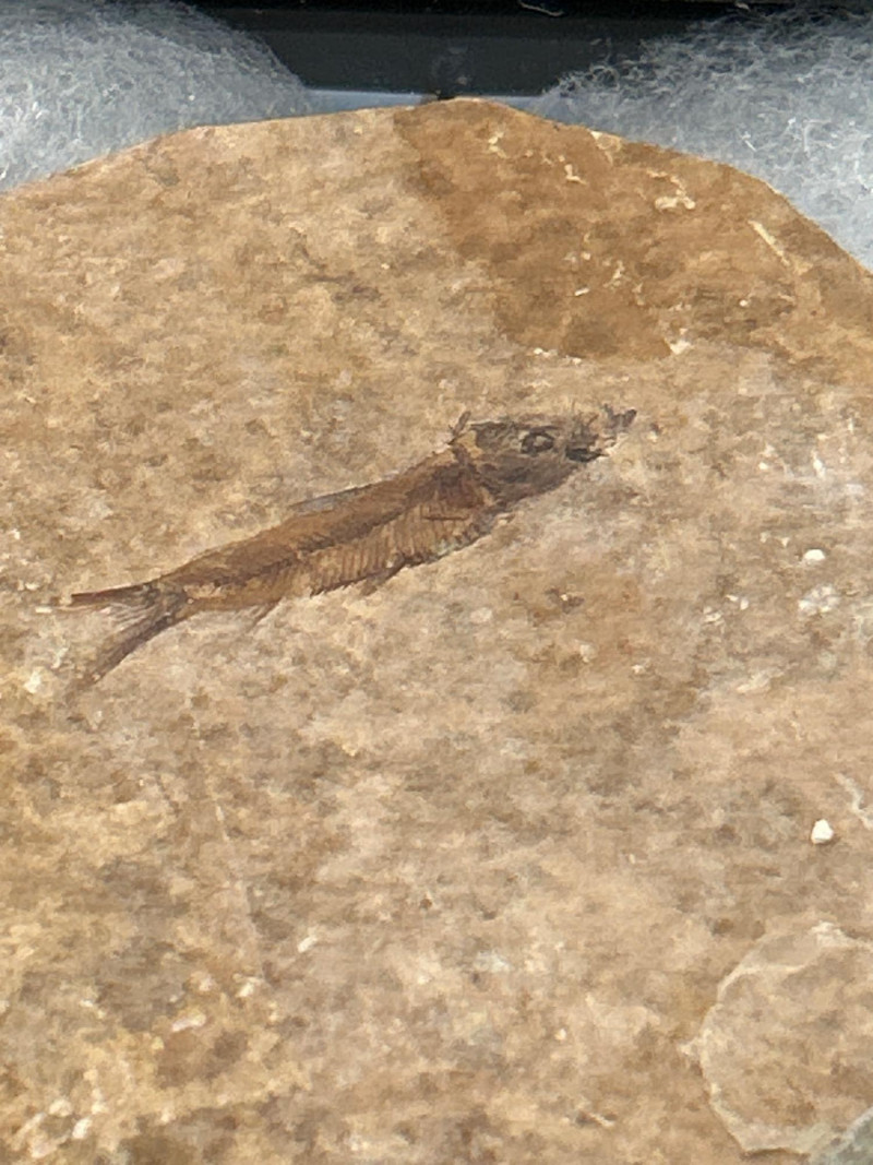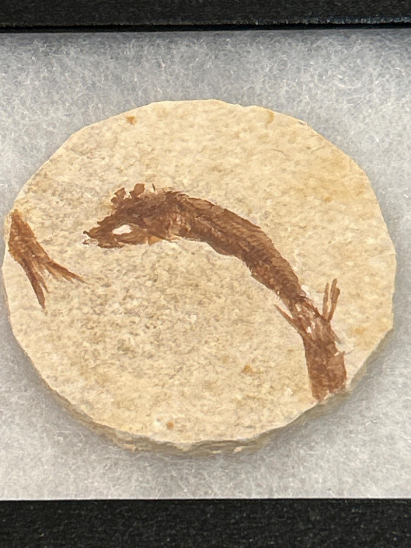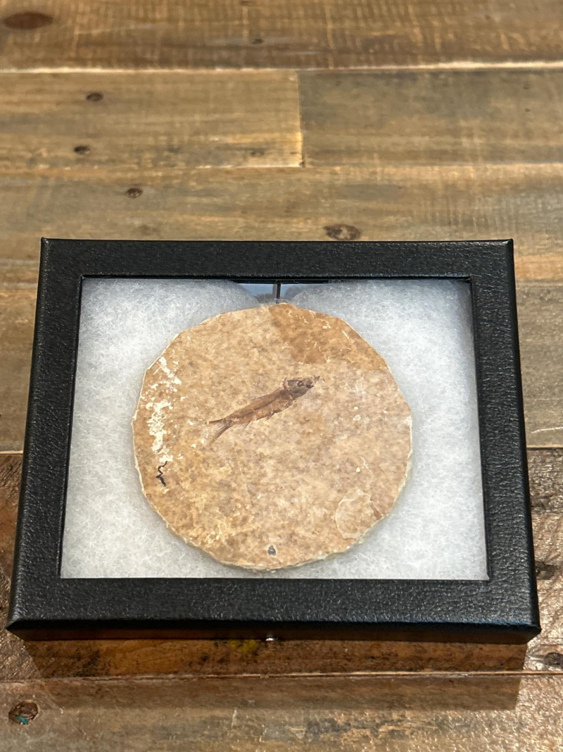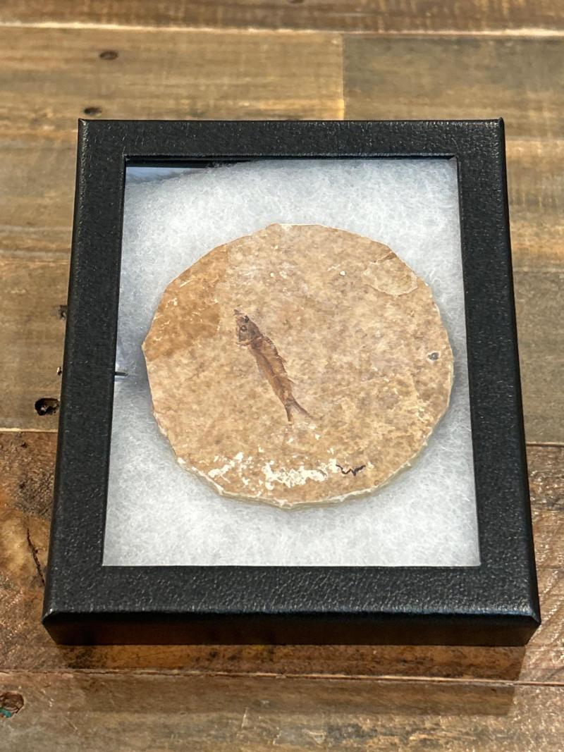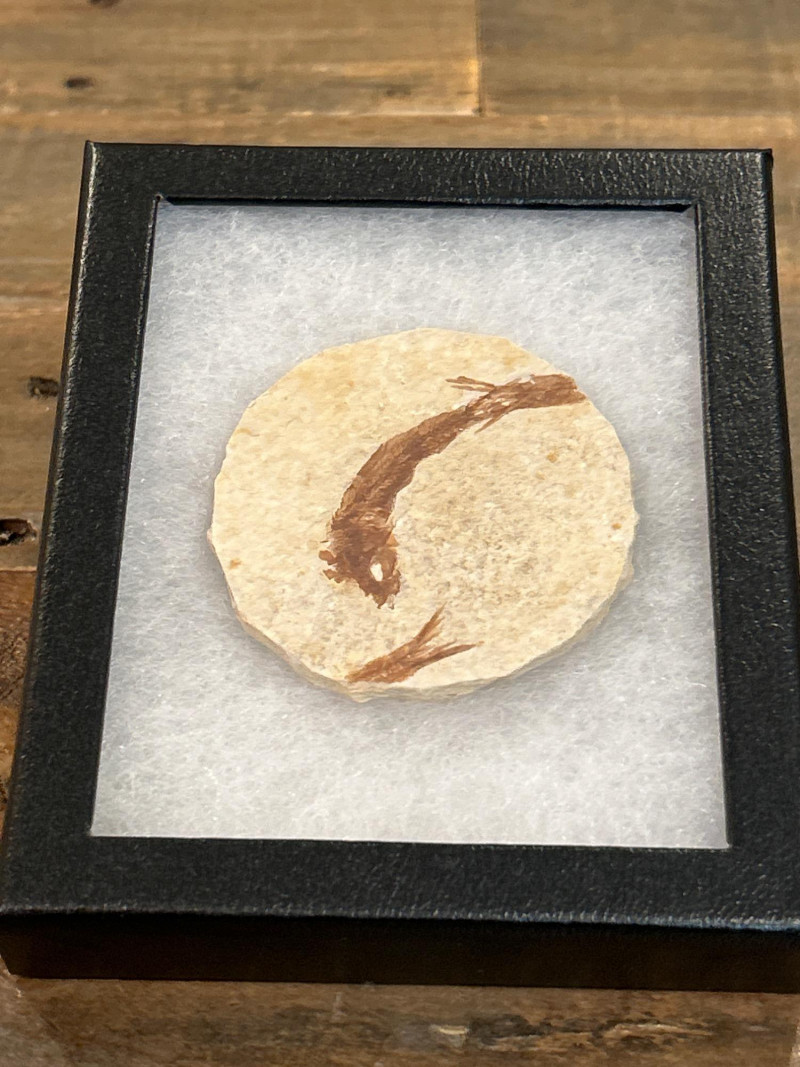 A curated trio of authentic fossil fish specimens from Wyoming’s Green River Formation, dating to the Eocene Epoch (~50 million years ago). Each specimen is preserved in cream-to-tan shale with visible skeletal and fin structures, professionally mounted in black glass-fronted frames. These examples reflect the exceptional fossilization conditions of this iconic formation. Formation:Green River Formation Age:Eocene Epoch (~50 million years) Location:Wyoming, USA Species (likely):Knightia eocaenaor Diplomystus dentatus Material:Fossil fish in natural shale matrix Display:Black frames with protective glass and foam backing Frame Size:Approx. 6.5” H × 5” W Fossil Disc Size:Approx. 3.5”–4” diameter Note: Green River fish fossils are among the most widely collected vertebrate fossils, valued for their clarity, provenance, and accessibility.