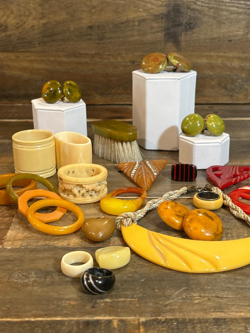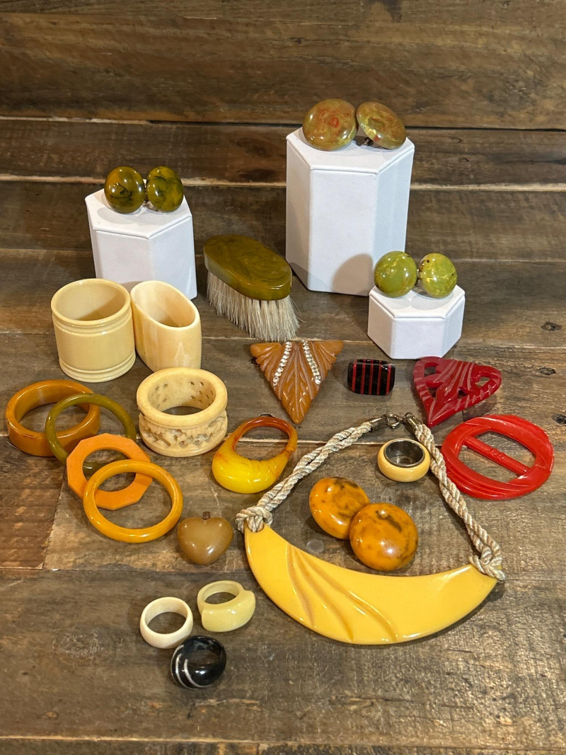 Lot # 64 - Art Deco Bakelite & Celluloid Jewelry and Napkin Ring Collection