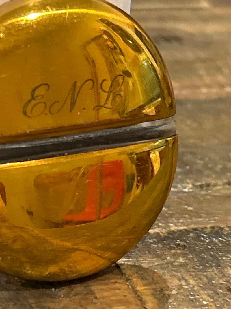 Mid-Century Gilt Glass Travel Perfume Bottle, Monogrammed “E.N.L.”