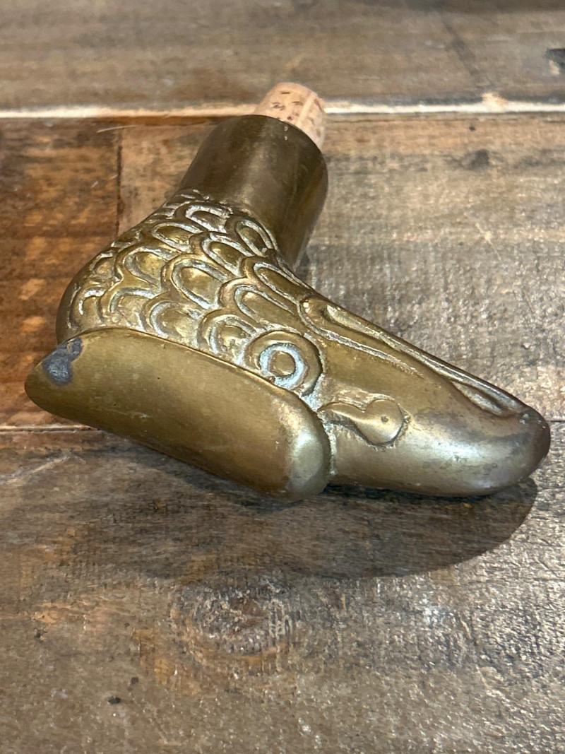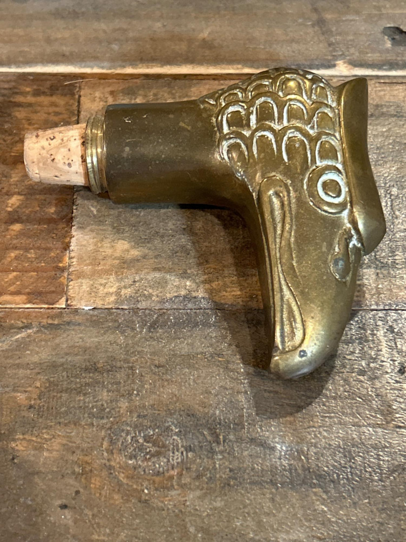 Hand-painted forest scene with deer; white mouthpiece and elongated bowl. Approx. 5.5" L. Brass Eagle Cane Handle