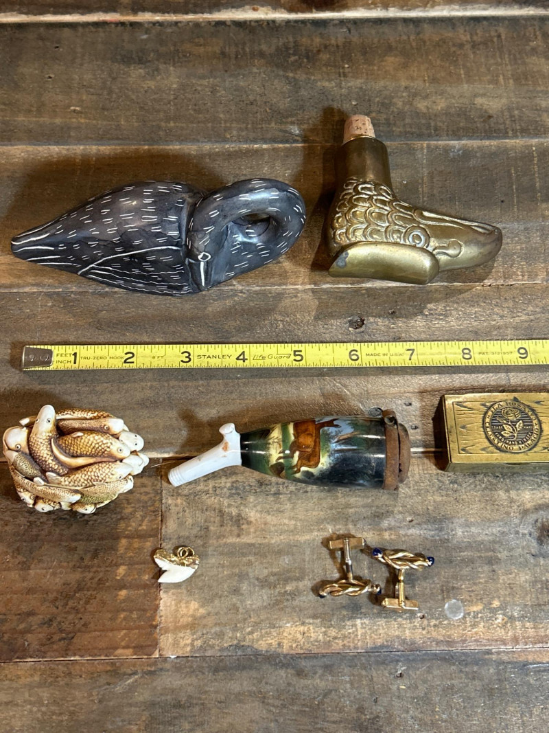 Lot # 78 - Match Holder, Cuff Links & Curios – 7-Piece Vintage Ensemble