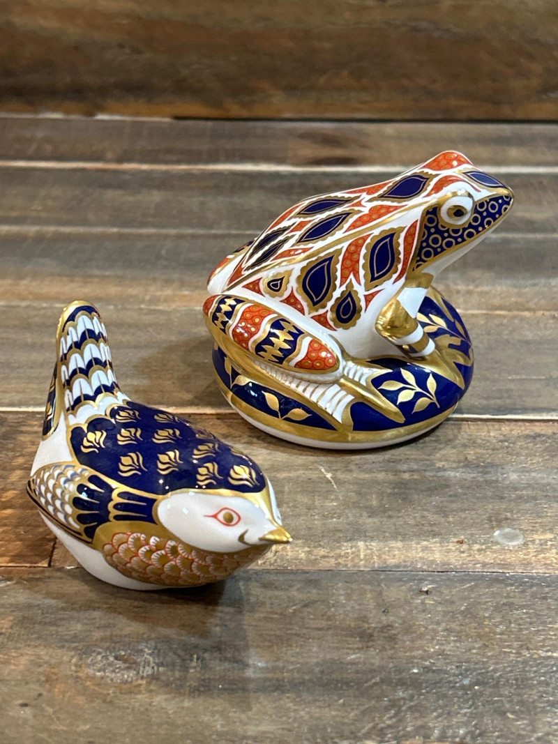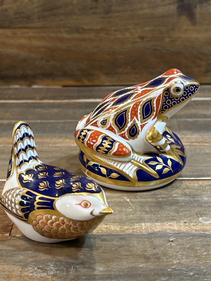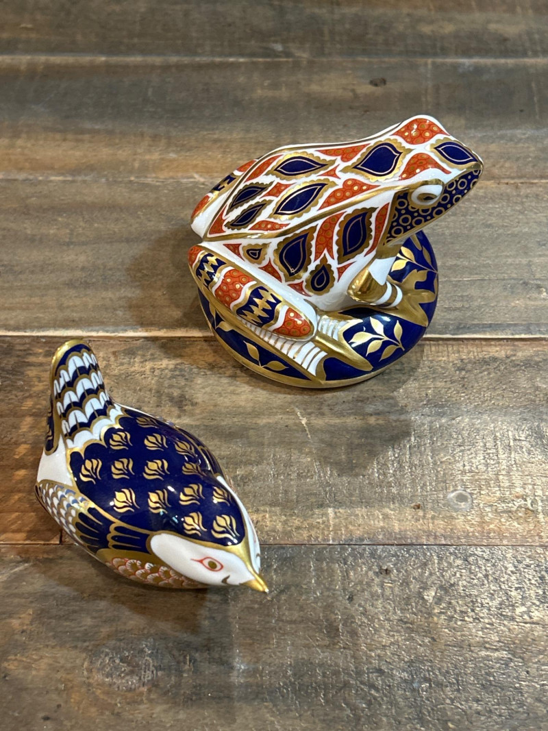 Lot # 83 - Pair of Royal Crown Derby Imari Porcelain Paperweights – Frog & Bird