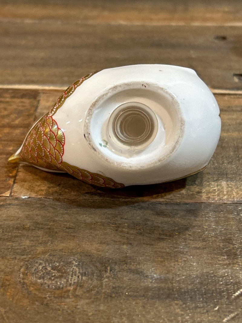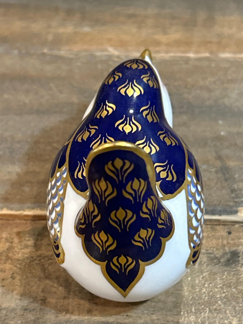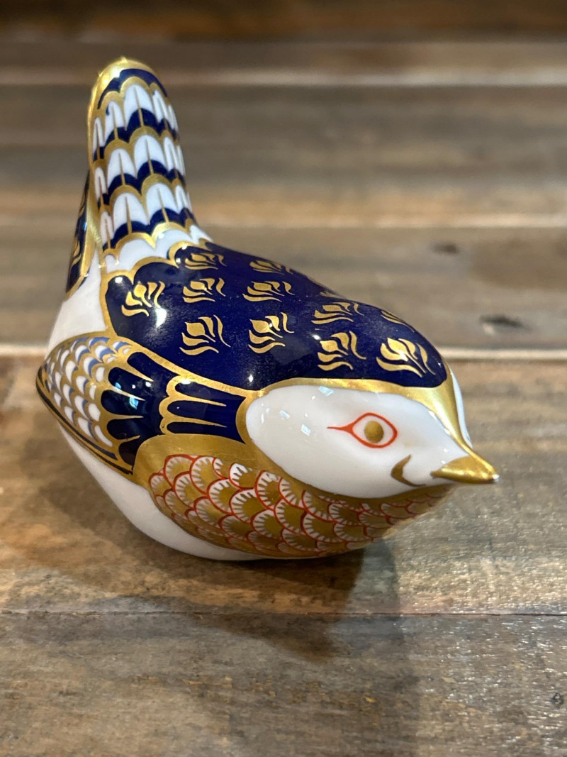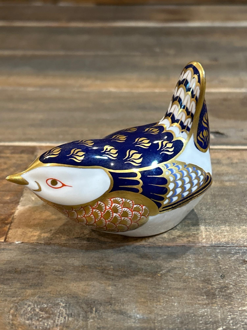 Style Notes: A bold and symmetrical example from Royal Crown Derby’s collectible animal series. Richly ornamental and vibrant — a showcase of English porcelain craftsmanship. Royal Crown Derby Imari Paperweight – “Wren Bird”