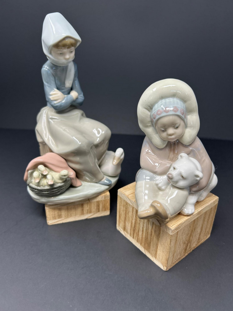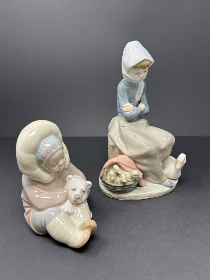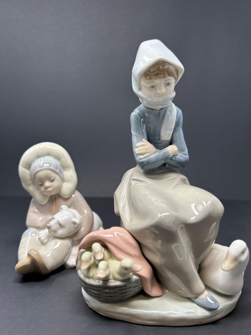 Lot # 97 - LLADRÓ Retired Porcelain Figurines – Duck Seller & Eskimo Playing