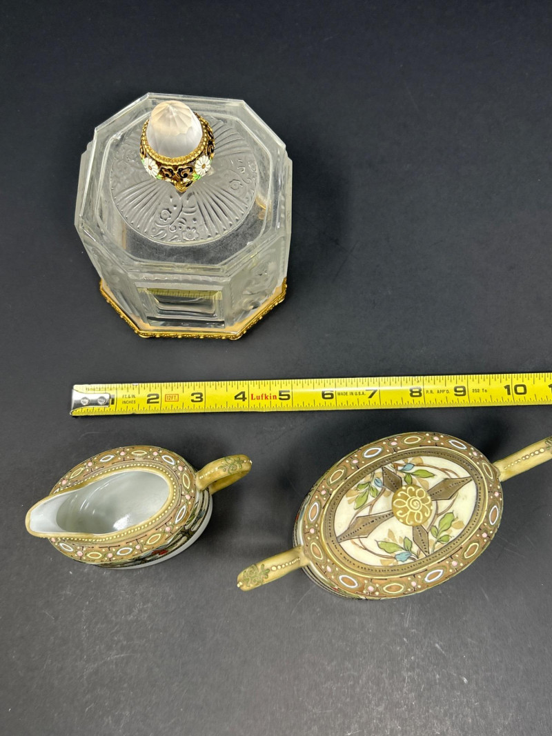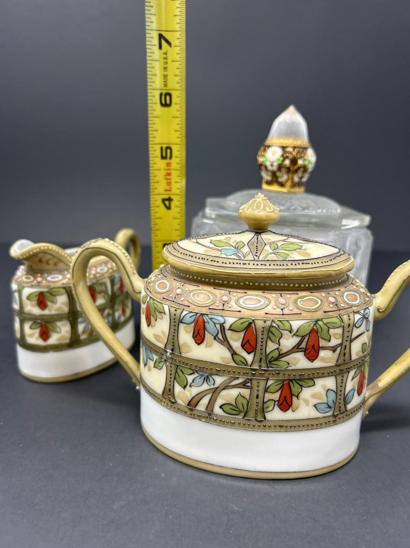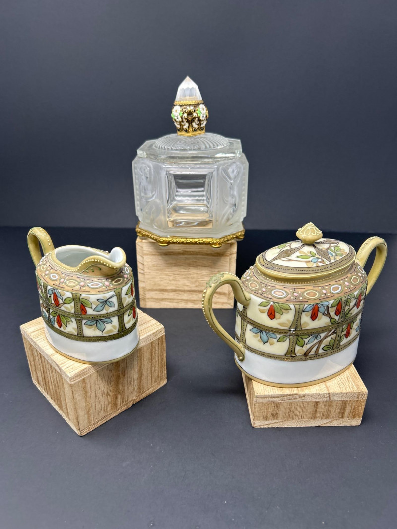 Lot # 105 - Art Nouveau Vanity Jar with Nippon Moriage Cream & Sugar Set