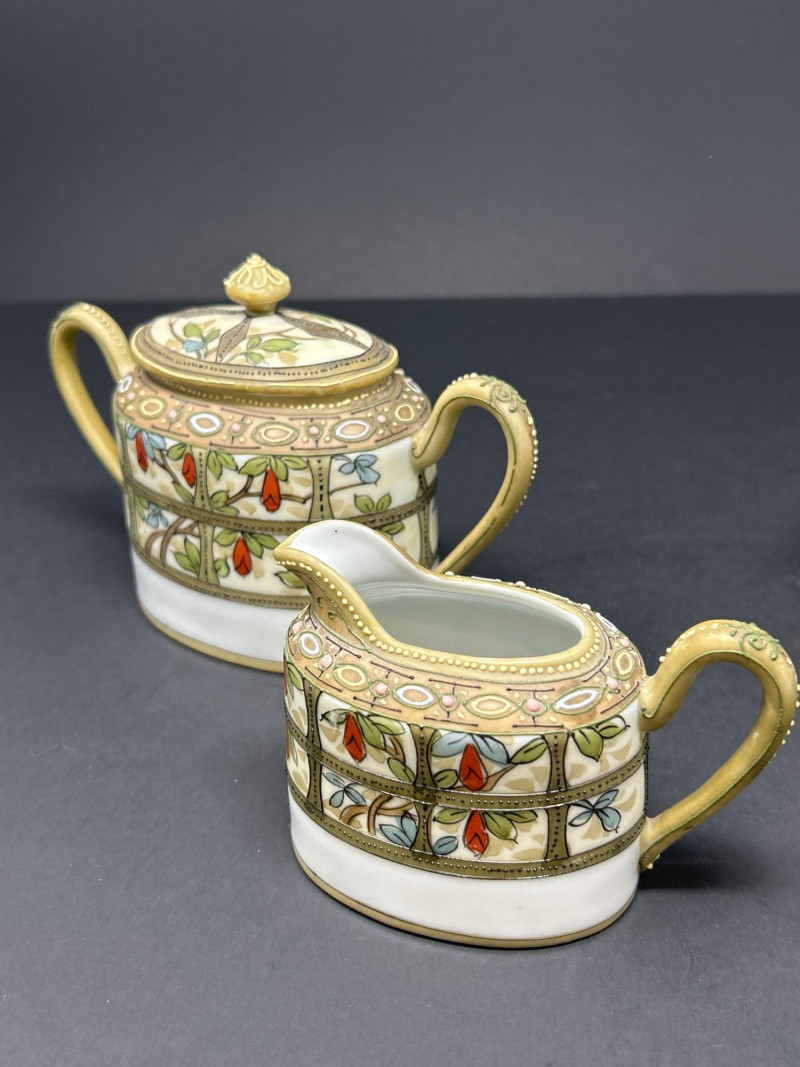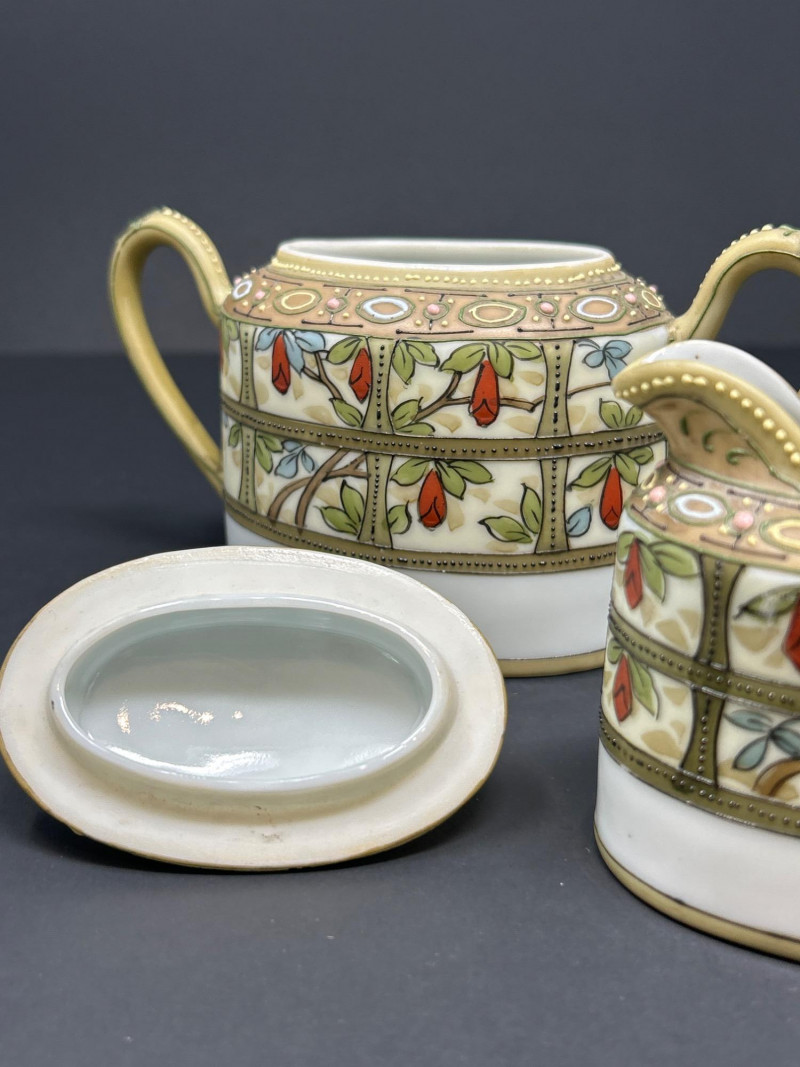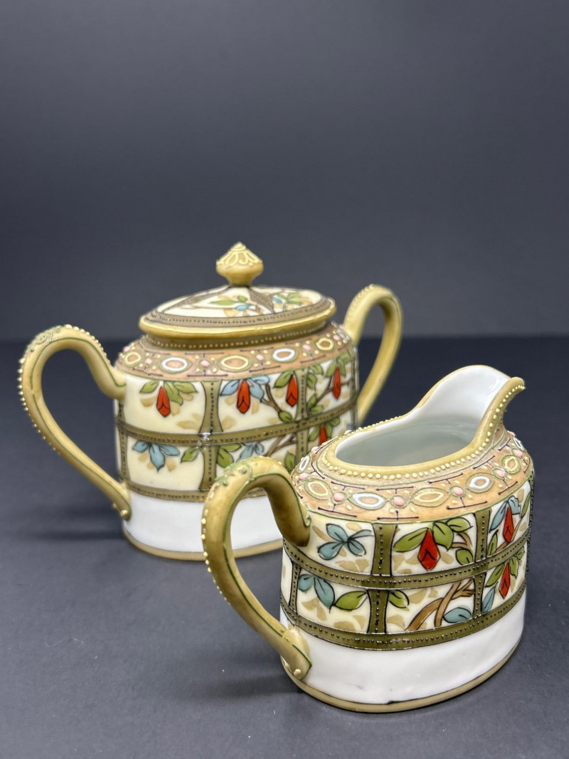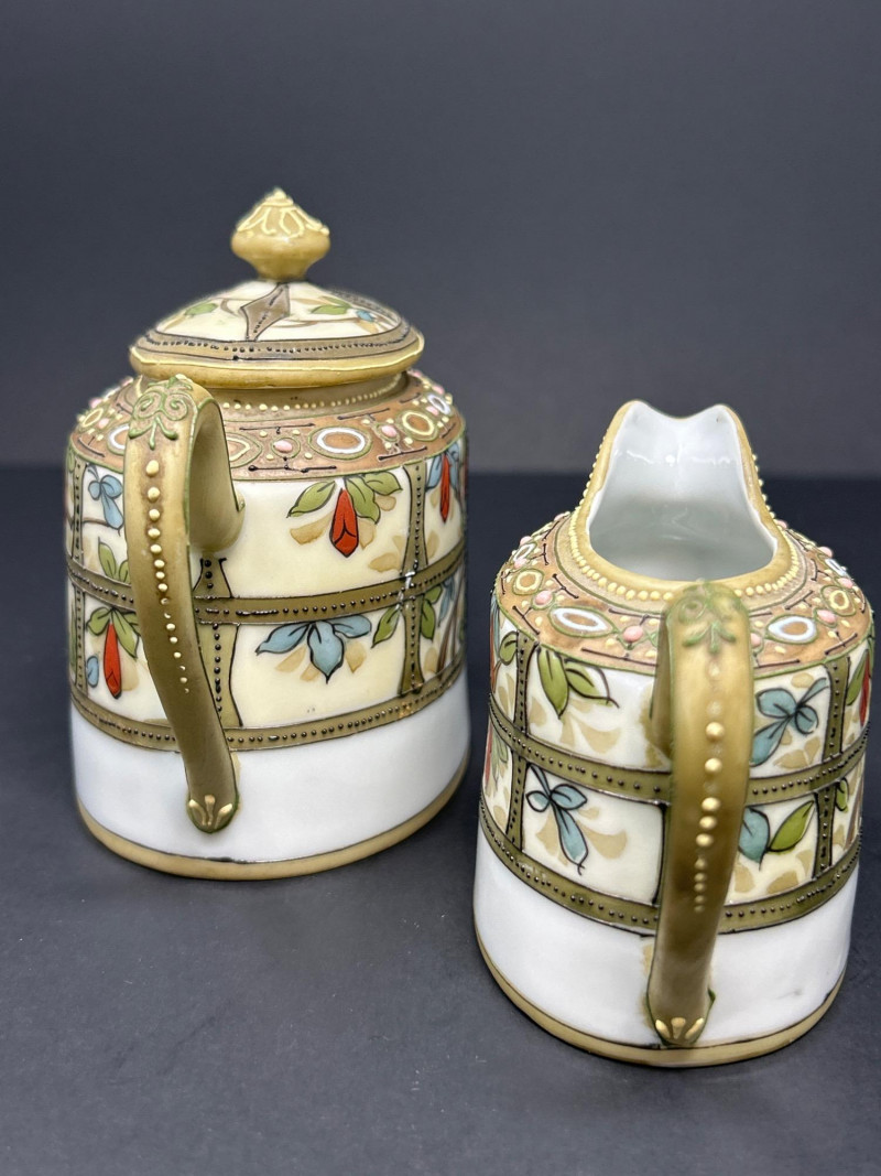 Nippon Hand-Painted Moriage Creamer and Sugar Set