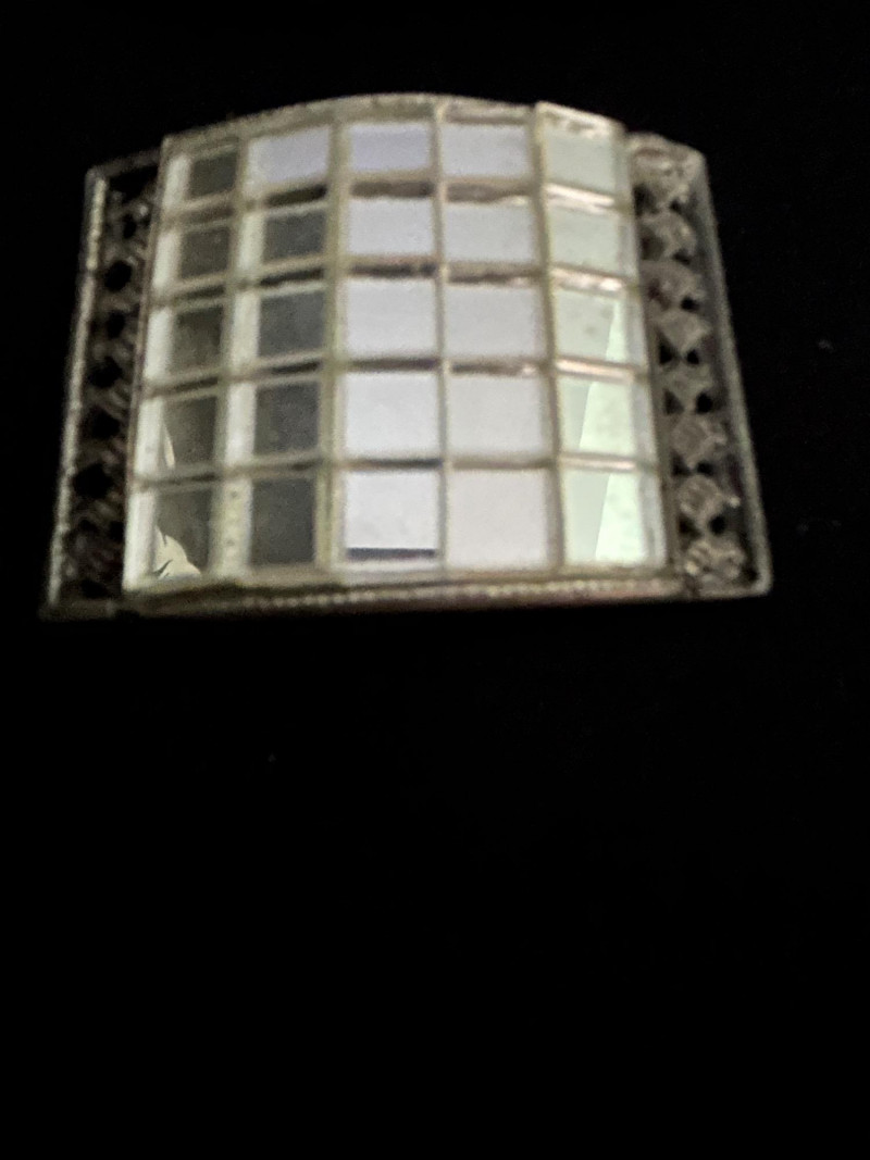 Features a fine mesh border and integrated clasp. Industrial elegance with a utilitarian clasp mechanism, likely 1950s–60s. Perforated Panel Fastener