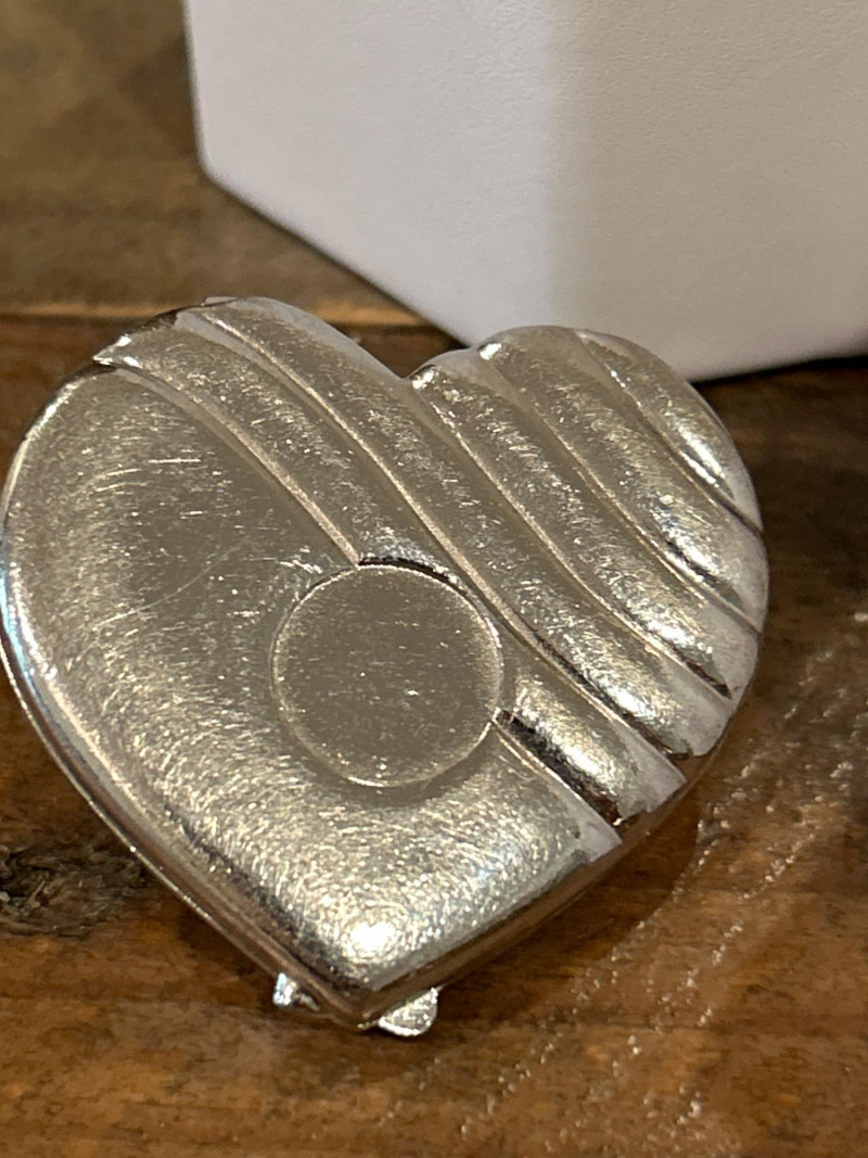 Collecting Note: A clever novelty form reflecting Victorian-to-midcentury gentleman’s accessories—often carried as match or pill holders. Estée Lauder Heart Compact