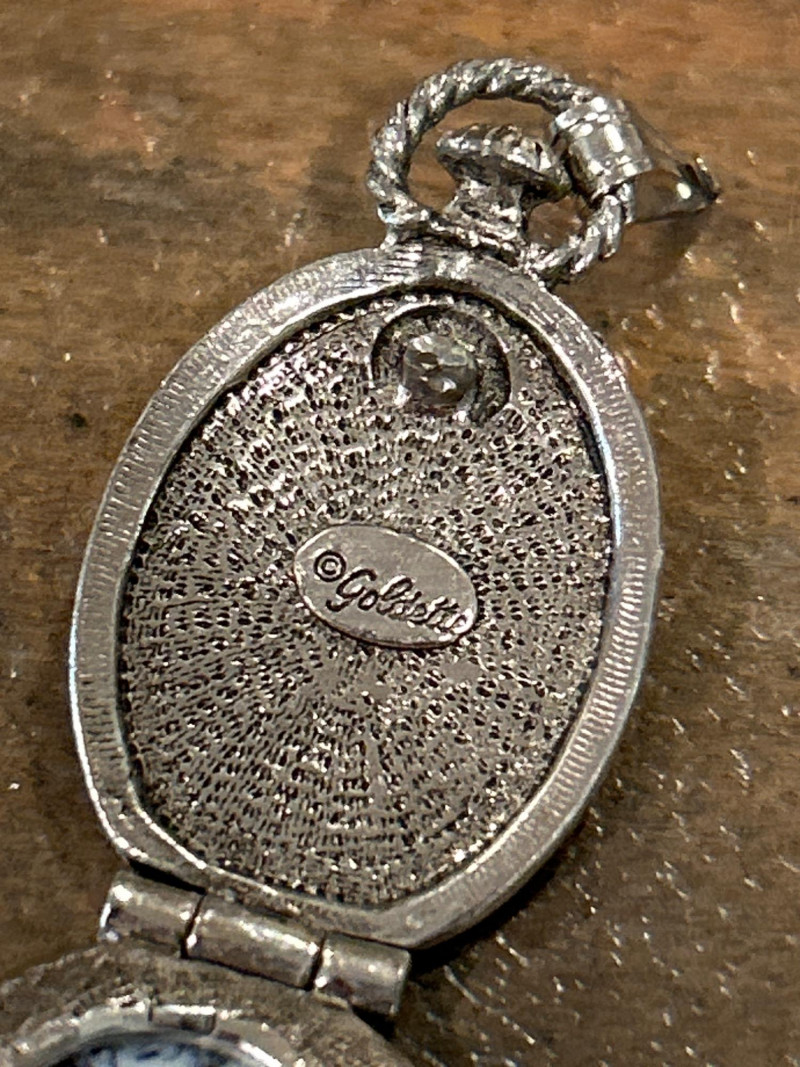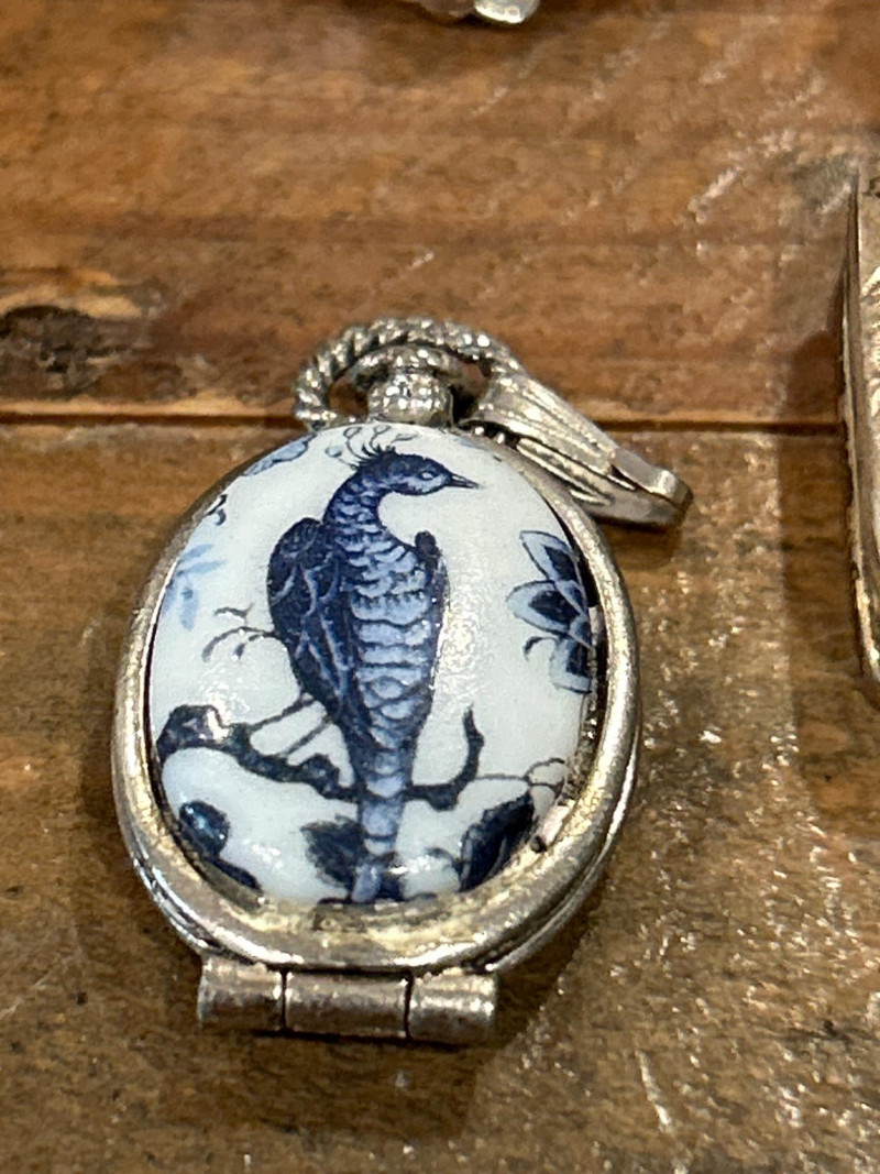 Collecting Note: A highly collectible Estée Lauder figural compact—part of the brand’s limited edition solid perfume series, cherished for whimsical sculptural forms. Goldette Porcelain Peacock Locket Pendant