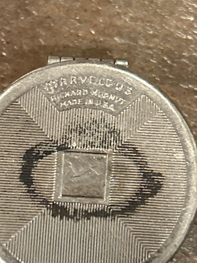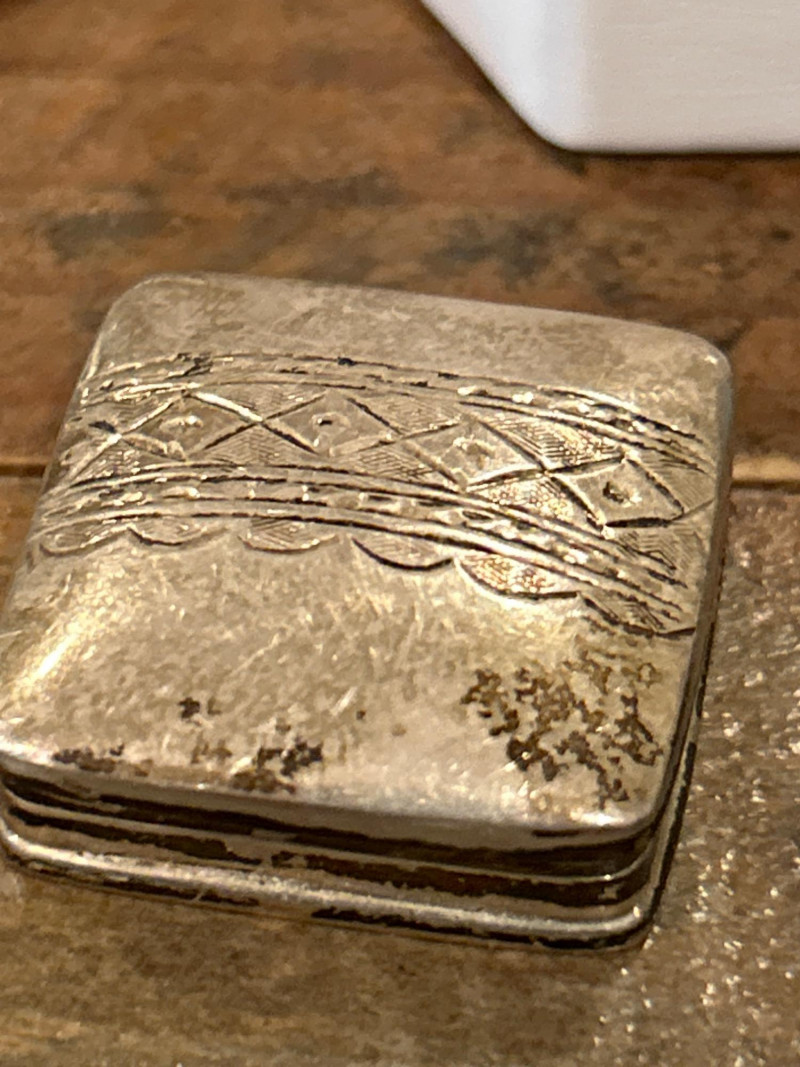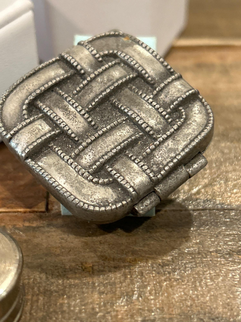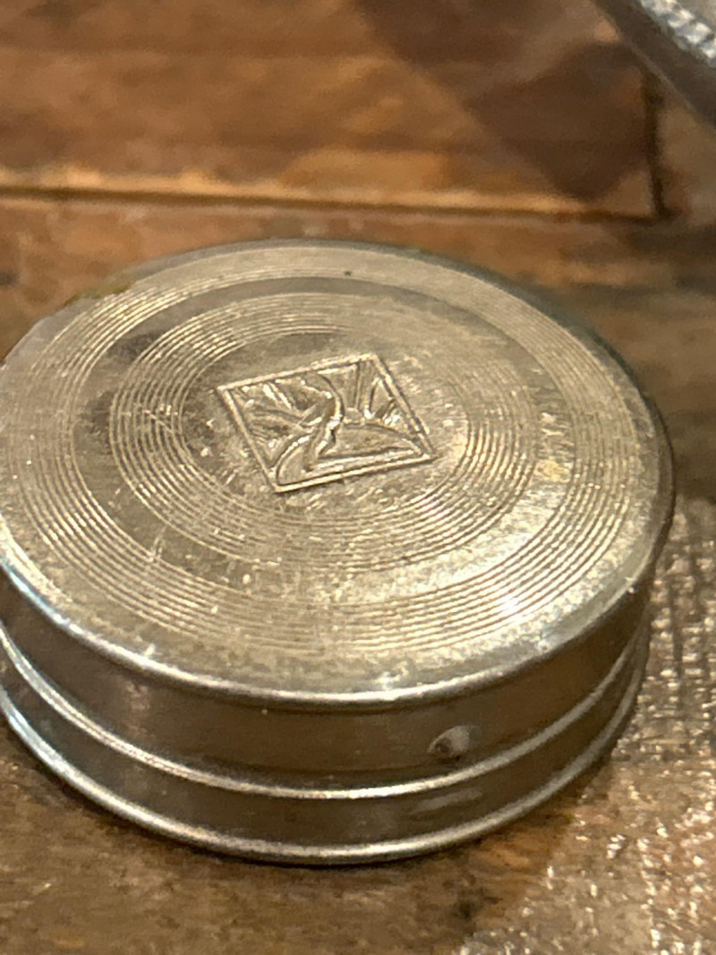 Era: c. 1940s–1950s Collecting Note: Midcentury vanity design emphasizing texture and durability—rarely found with original cosmetic still intact. Engraved Pill or Snuff Box