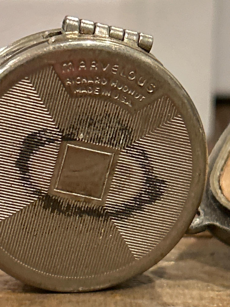 Era: c. 1960s–1970s Collecting Note: Goldette’s porcelain lockets are admired for merging vintage charm with fine ceramic artistry—a standout vanity pendant or necklace piece. Richard Hudnut “Marvelous” Art Deco Rouge Compact