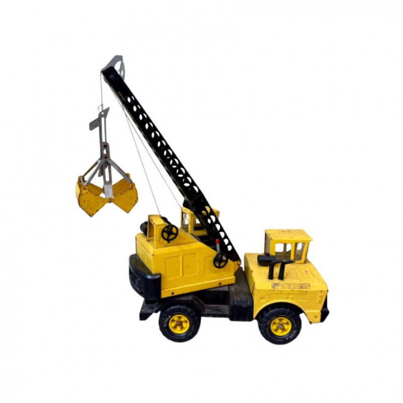 Vintage 1960s–1970s Tonka Pressed Steel Mighty Crane Truck A striking example of mid-century American toy craftsmanship, this vintage Tonka Mighty Crane Truck captures the rugged charm and durability that made Tonka a household name. Constructed from heavy pressed steel with authentic yellow and black detailing, this collectible features functional cranks, a fully extendable boom, and a working grabber arm—showcasing the mechanical ingenuity of the era. Produced by Tonka Corporation (Mound, Minnesota) between the late 1960s and early 1970s, this model remains a nostalgic symbol of postwar American play and design. The Lark construction series was celebrated for its lifelike industrial aesthetic and solid build quality, appealing to both children and collectors alike. Brand: Tonka Era: 1960s–1970s Material: Pressed steel with rubber tires Features: Working crane boom, grabber claw, hand crank, and rotating base Condition: Good vintage condition with light surface wear consistent with age Dimensions: Approx. 21” L × 8” W × 14” H A timeless collectible for vintage toy enthusiasts or industrial décor lovers—Tonka’s craftsmanship still stands the test of time.