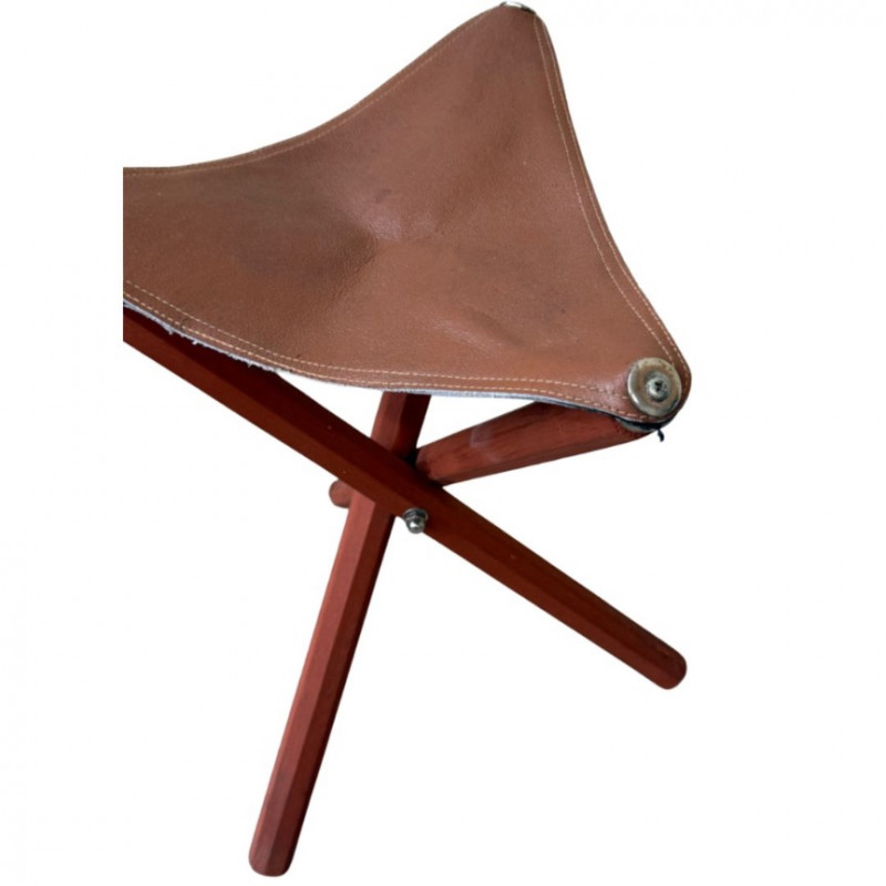 Lot # 137 - Vintage French Hunting Tripod Chair – Leather Seat & Wood Frame