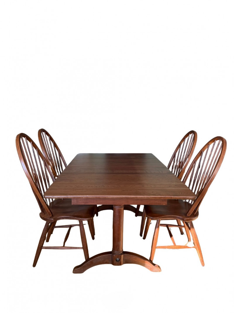 Vintage Solid Wood Dining Table with 4 Windsor Chairs Type: Solid wood dining table with 4 matching Windsor chairs Comparable vintage oak dining sets of this style have sold between $600–$1,200 depending on maker and finish.