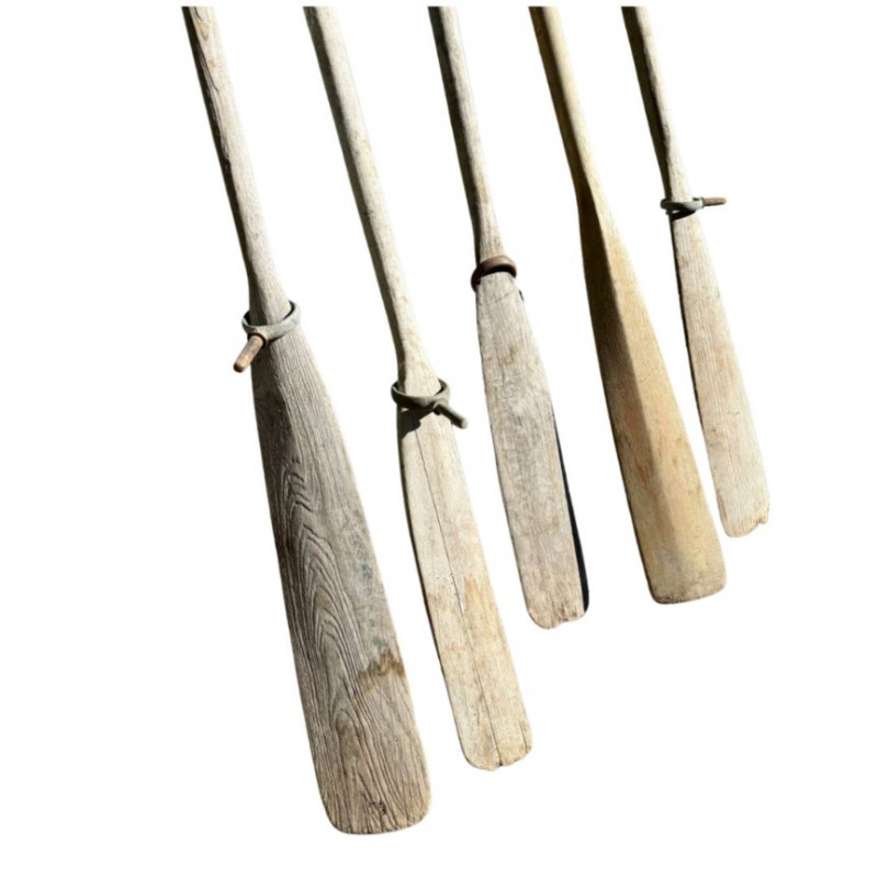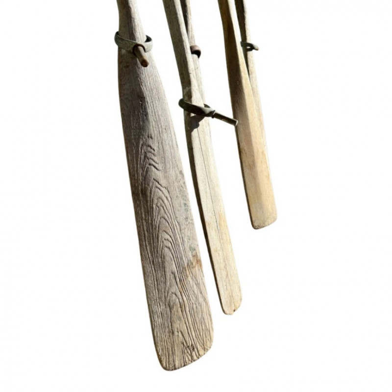 Set of 4 Vintage Wooden Boat Oars — Weathered Nautical Decor Timeless craftsmanship and proportion make this a striking decorative statement reminiscent of early 20th-century maritime equipment. Type: Set of 4 vintage wooden oars