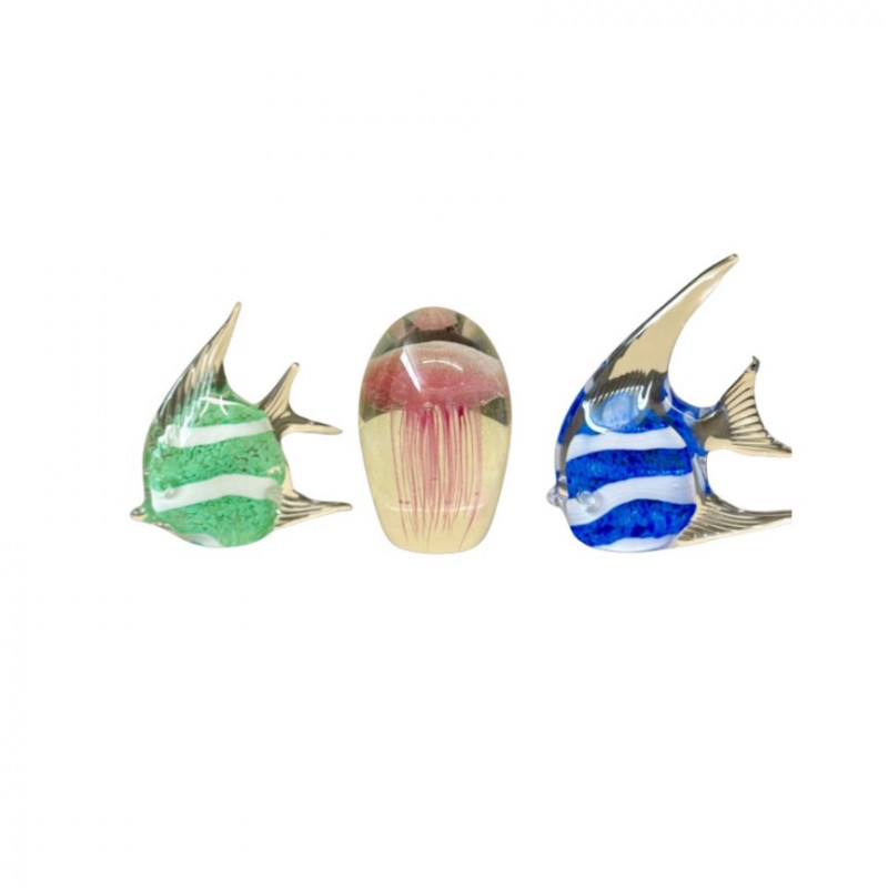Lot # 37 - Art Glass Trio — Jellyfish Paperweight & Pair of Fish Sculptures