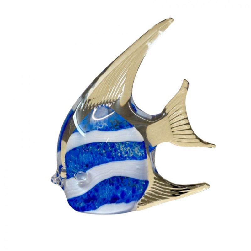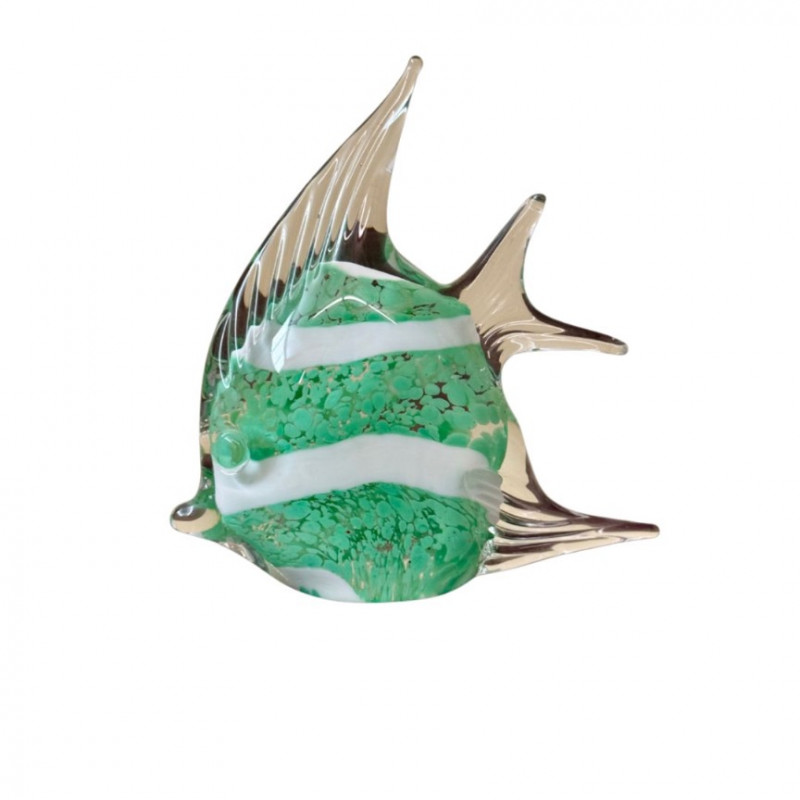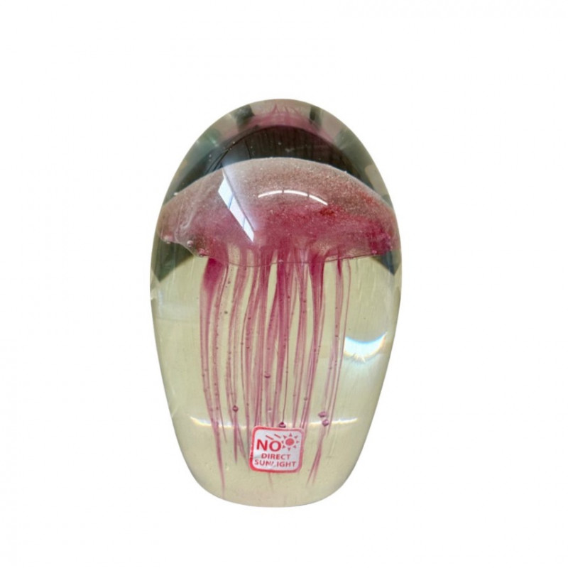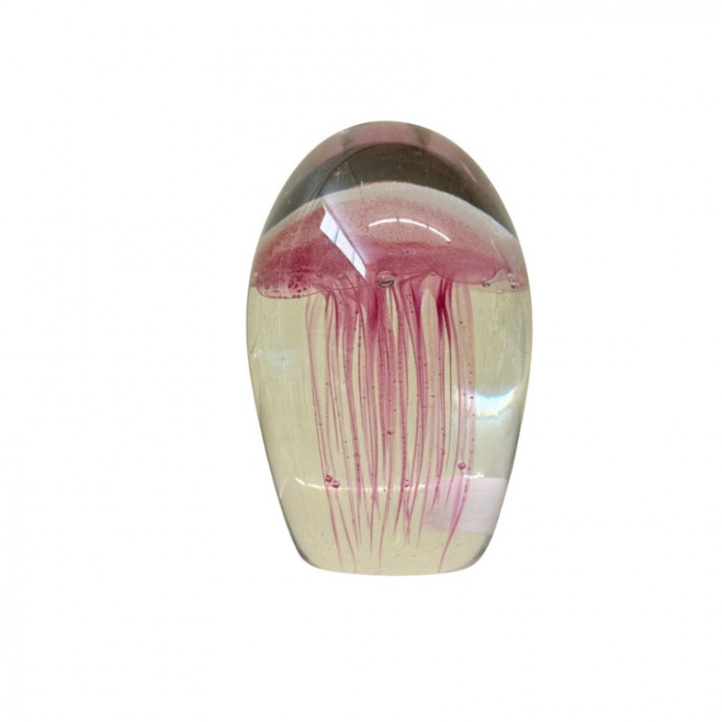 Art Glass Trio — Jellyfish Paperweight & Pair of Fish Sculptures Striking art glass collection featuring a mesmerizing pink jellyfish paperweight paired with two vibrant glass fish sculptures in oceanic hues of emerald green and cobalt blue. Each piece showcases remarkable craftsmanship, with fluid lines, clear glass fins, and encased color detail that beautifully captures light from every angle. Perfect for display on a shelf or desk, this trio embodies mid-century coastal charm and fine artisan technique. Includes: Three pieces — jellyfish paperweight, green fish, blue fish Material: Hand-blown glass Condition: Excellent vintage condition with no visible chips or cracks Measurements: Jellyfish approx. 4.5” H; fish approx. 5.5” W each
