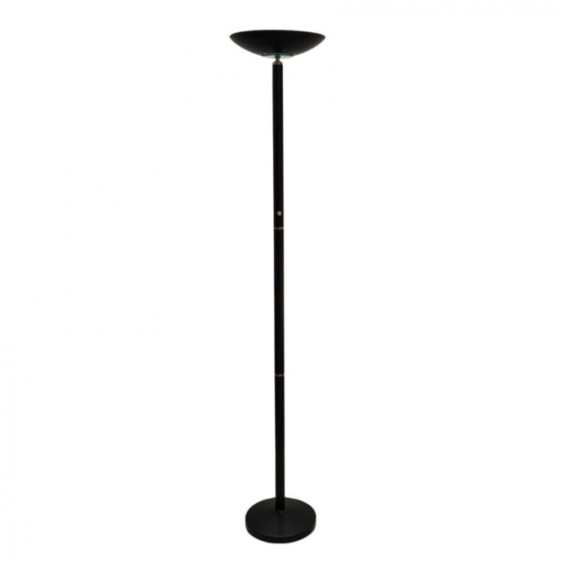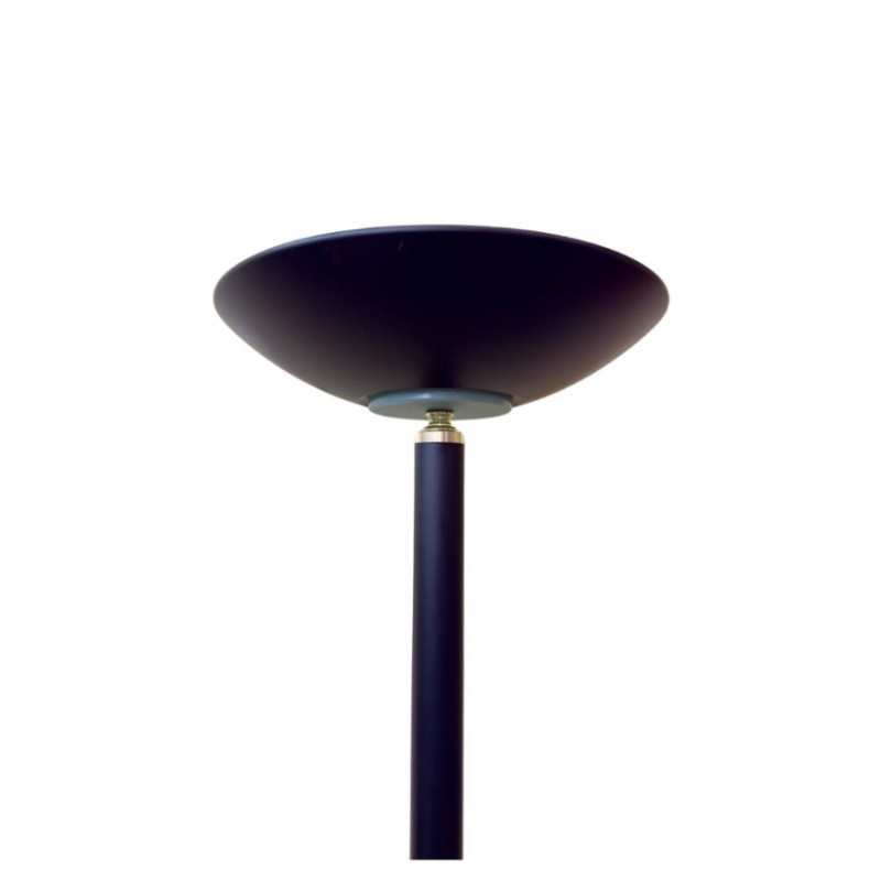 Vintage 1990s Halogen Torchiere Floor Lamp — 500W Black Metal Classic 1990s halogen torchiere floor lamp featuring a minimalist black metal body with upward-facing dish shade. Emits bright, room-filling light ideal for mid-century or postmodern interiors. Highly collectible and now sought after for its sleek architectural silhouette and quality construction reminiscent of Italian modern lighting. Type: 500-watt halogen torchiere lamp Era: 1990s Material: Black metal with brass-tone hardware Condition: Excellent vintage condition; tested and working Measurements: Approx. 71” H