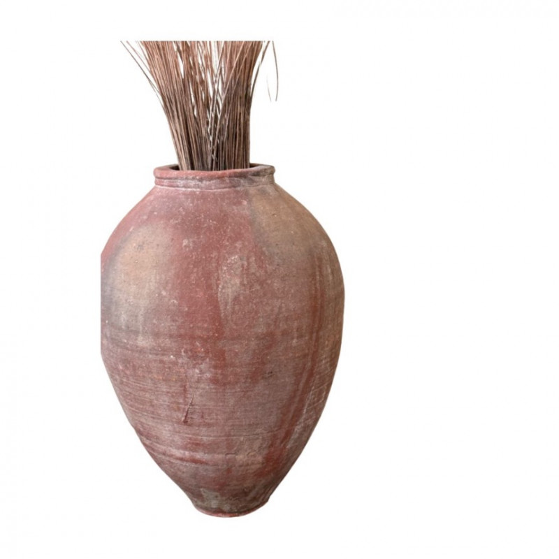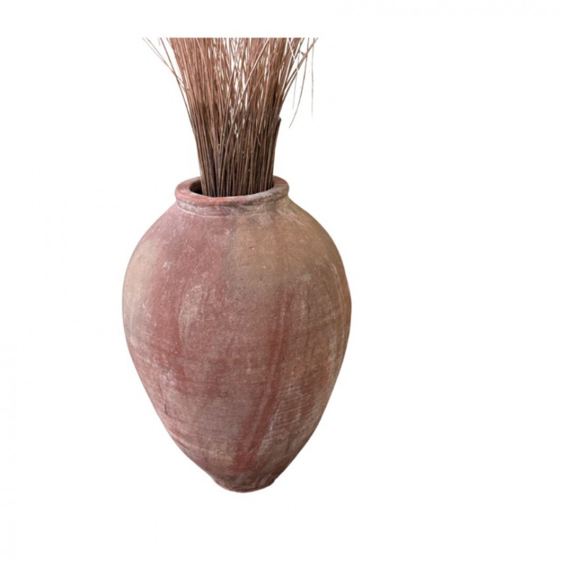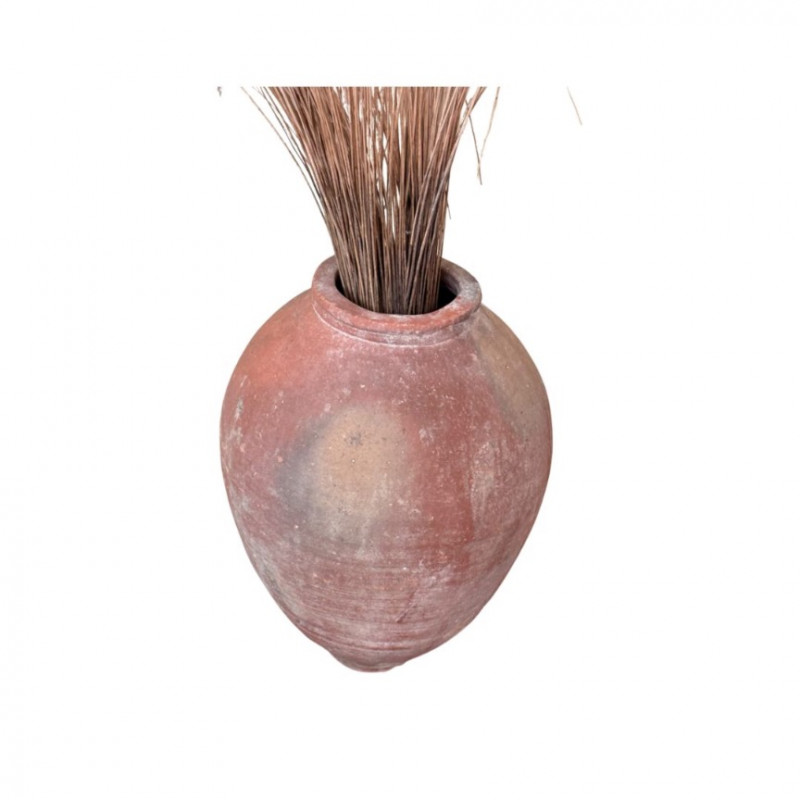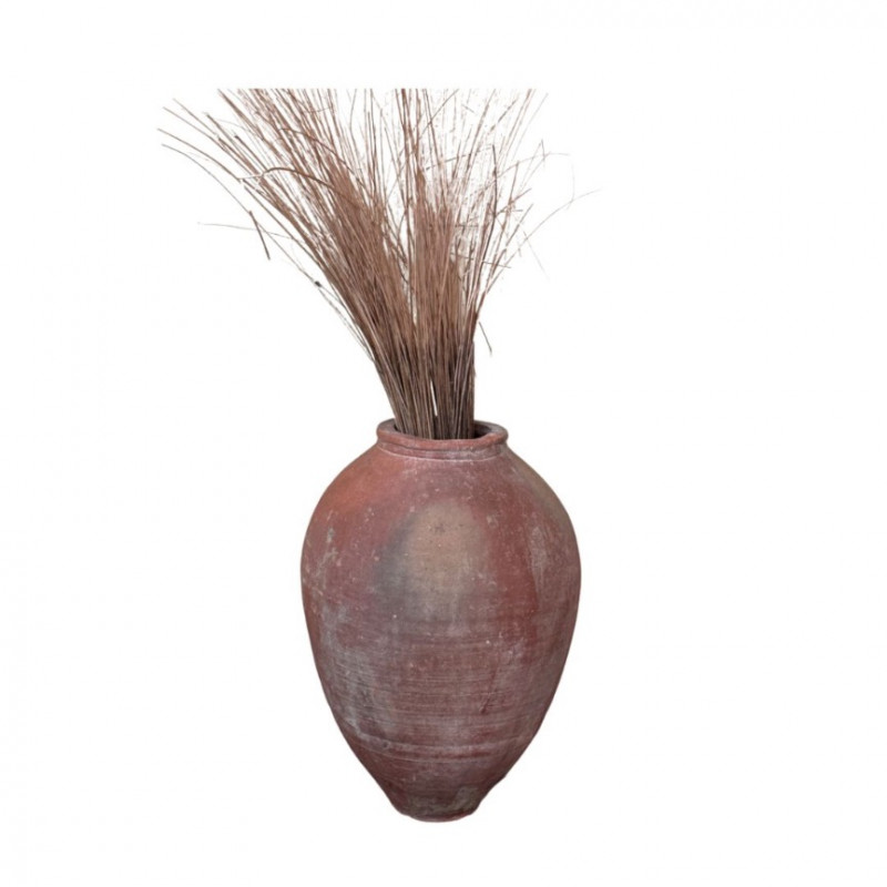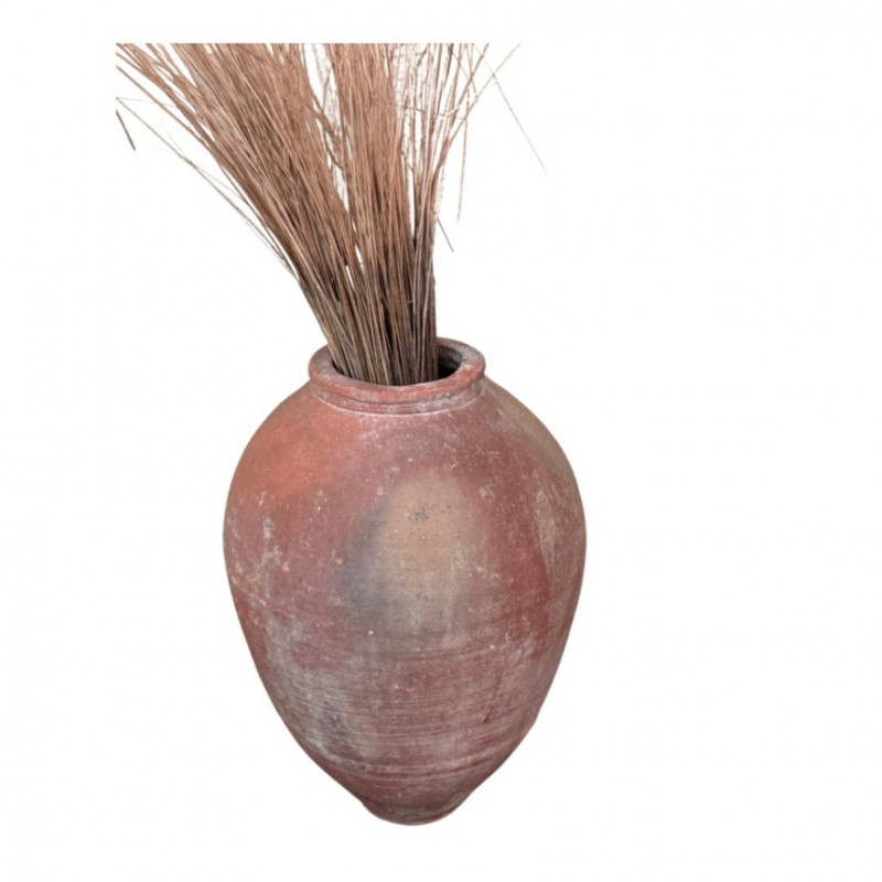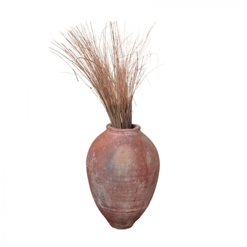 Large Aged Terracotta Pot with Dried Grass Arrangement — Mediterranean Rustic Decor Currently styled with dried ornamental grass, the piece works beautifully as a standalone floor vessel or as an accent in entryways, patios, or interior design spaces that embrace organic modern or rustic themes. Type: Large terracotta pot with dried grass