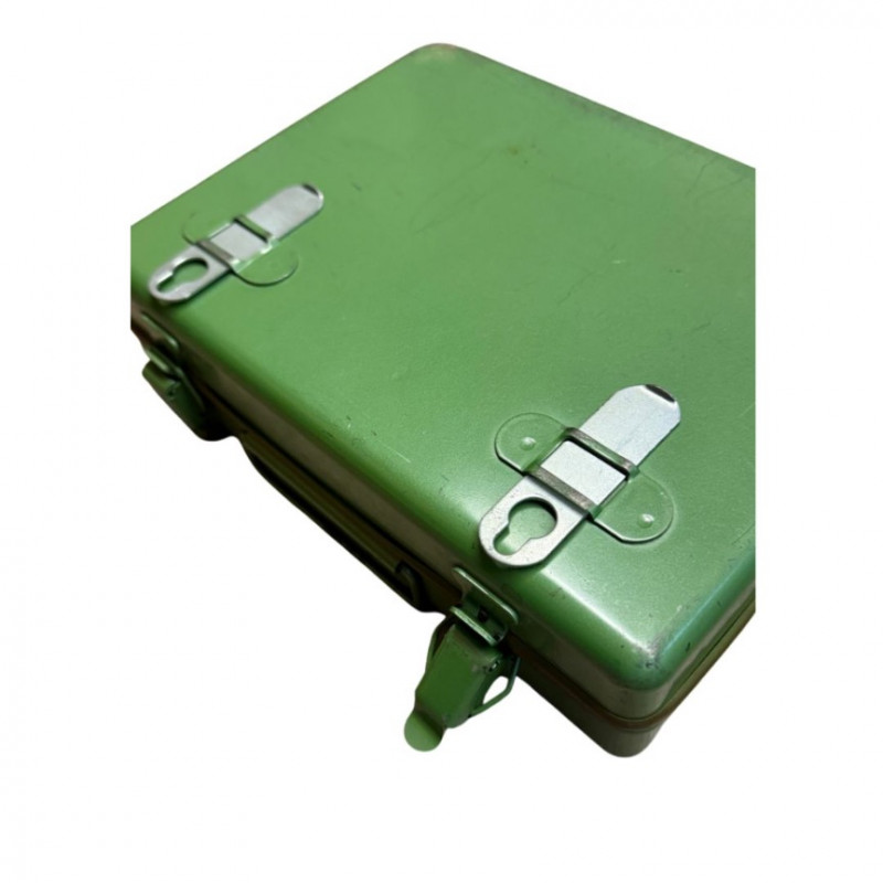 Condition: Vintage industrial wear, scratches, and oxidation consistent with age; lids close securely