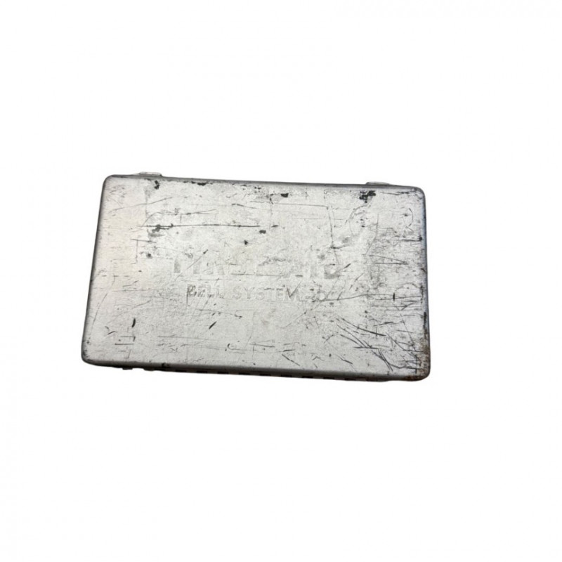 Vintage Metal First Aid Boxes — Bell System & Pacific Telephone Bell of Nevada Both feature hinged lids and embossed or stenciled lettering, representing two distinct eras of Bell System telecommunications history. The green “Type C” box retains its original paint and locking clasps, while the silver version shows authentic patina and wear from service use. Era: Circa 1950s–1970s