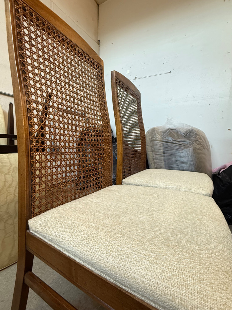 Excellent vintage condition overall. Structurally sound with light wear consistent with age; cane backs are intact and sturdy. Upholstery is clean and comfortable.