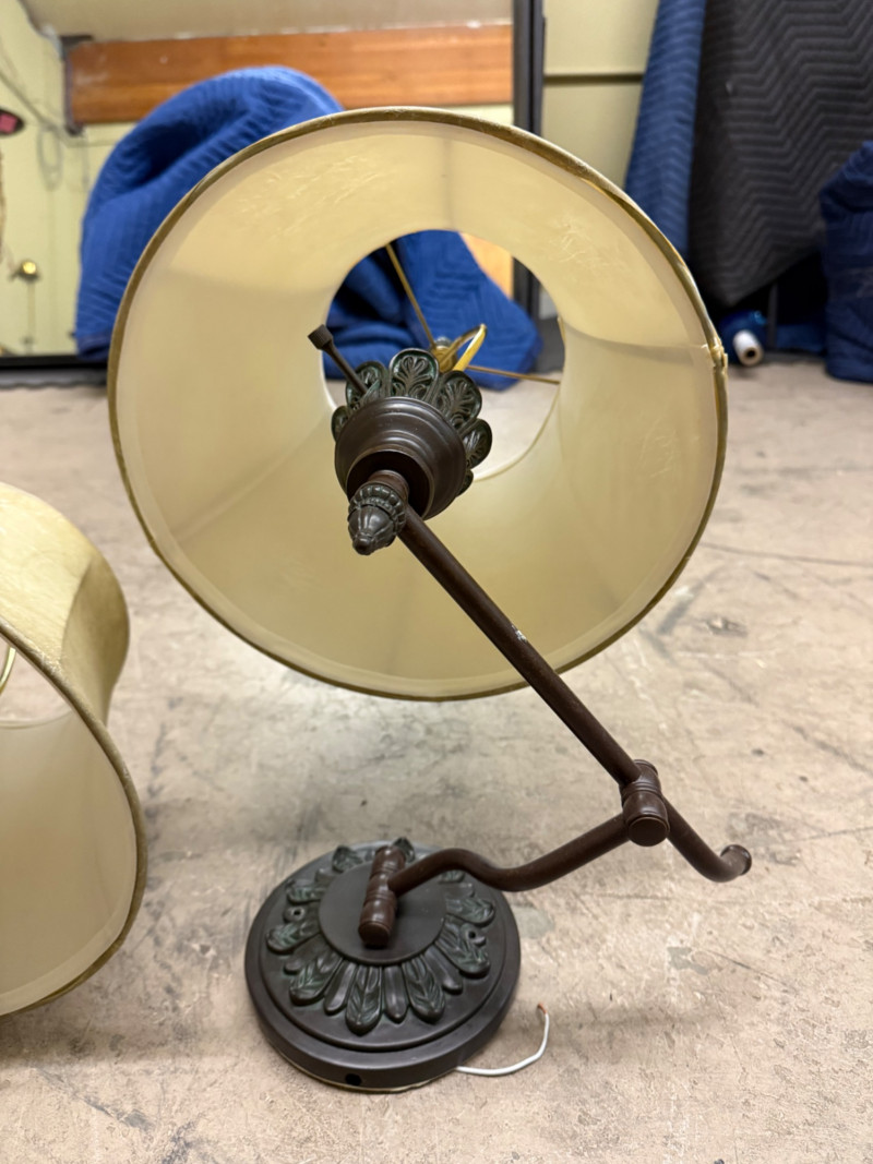 Lot # 90 - Pair of Vintage Bronze Wall Sconces with Fabric Shades