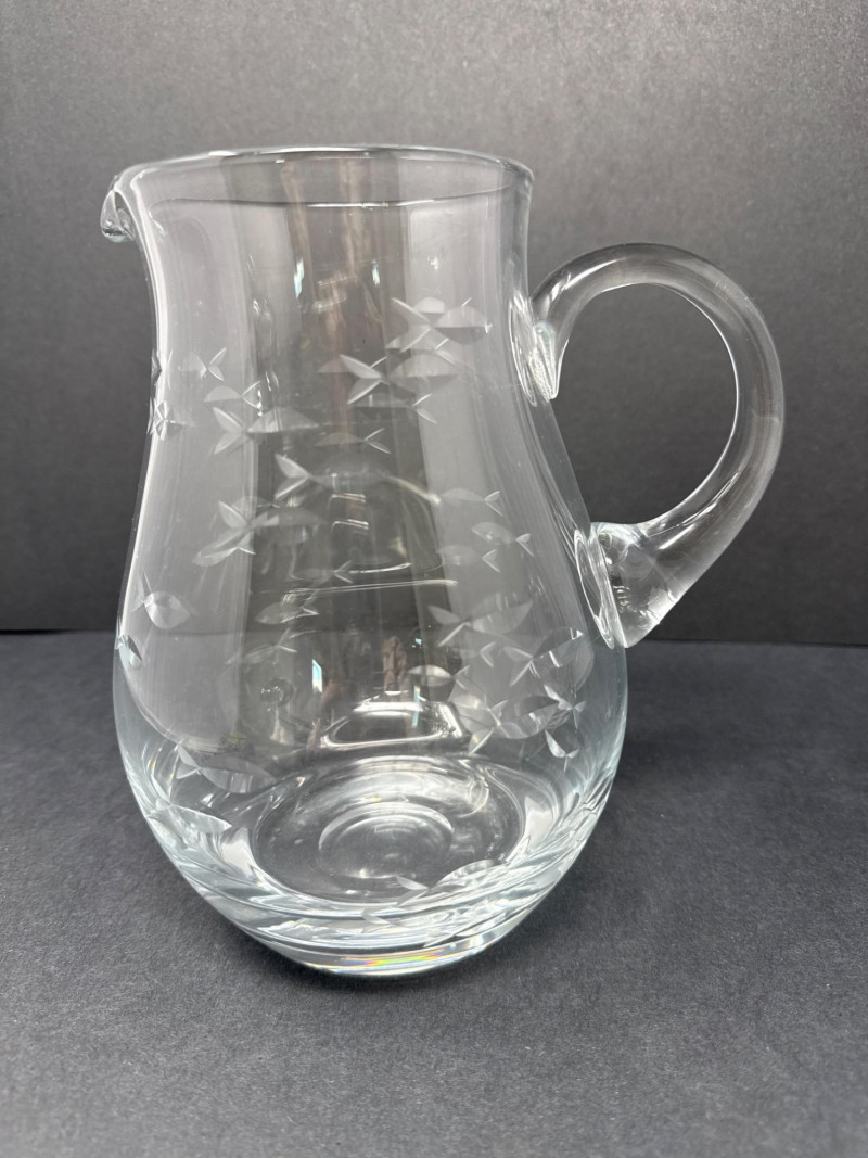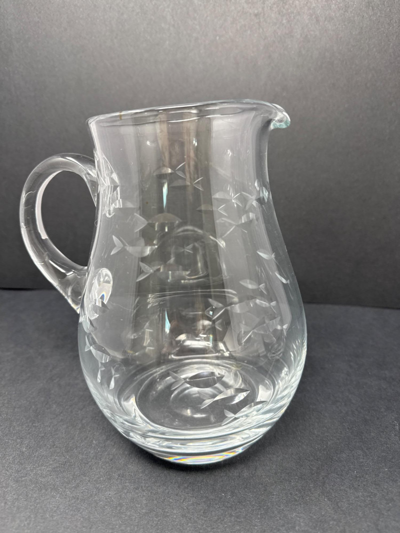 Lot # 49 - Etched Fish Glass Pitcher & Pierced-Hole Hand-Blown Carafe