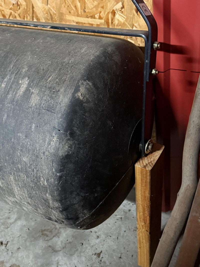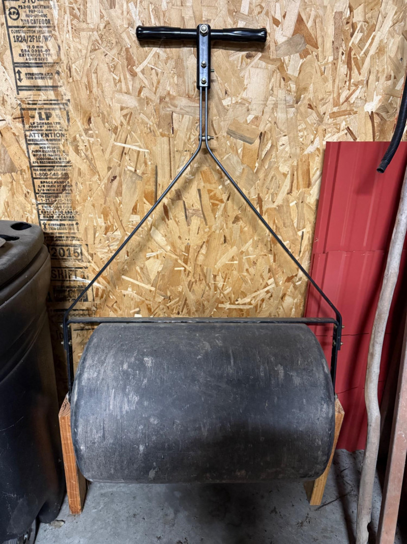 This is a Brinly-Hardy Co. 24-inch Poly Lawn Roller, Made in the USA. The roller features a durable polyethylene drum supported by a steel handle frame with a T-style grip for easy maneuverability. The model number label (PRC-241BH) confirms this as one of Brinly’s heavy-duty residential rollers designed for lawn maintenance and turf restoration. Manufacturer: Brinly-Hardy Co., Jeffersonville, Indiana, USA Model: PRC-241BH Width: 31 inches overall Drum Material: High-density poly (resists rust and dents) Frame Material: Steel with powder-coated finish Handle Type: T-style ergonomic grip Usage: Ideal for leveling soil, pressing down seed, or smoothing newly sodded areas Collecting Note: