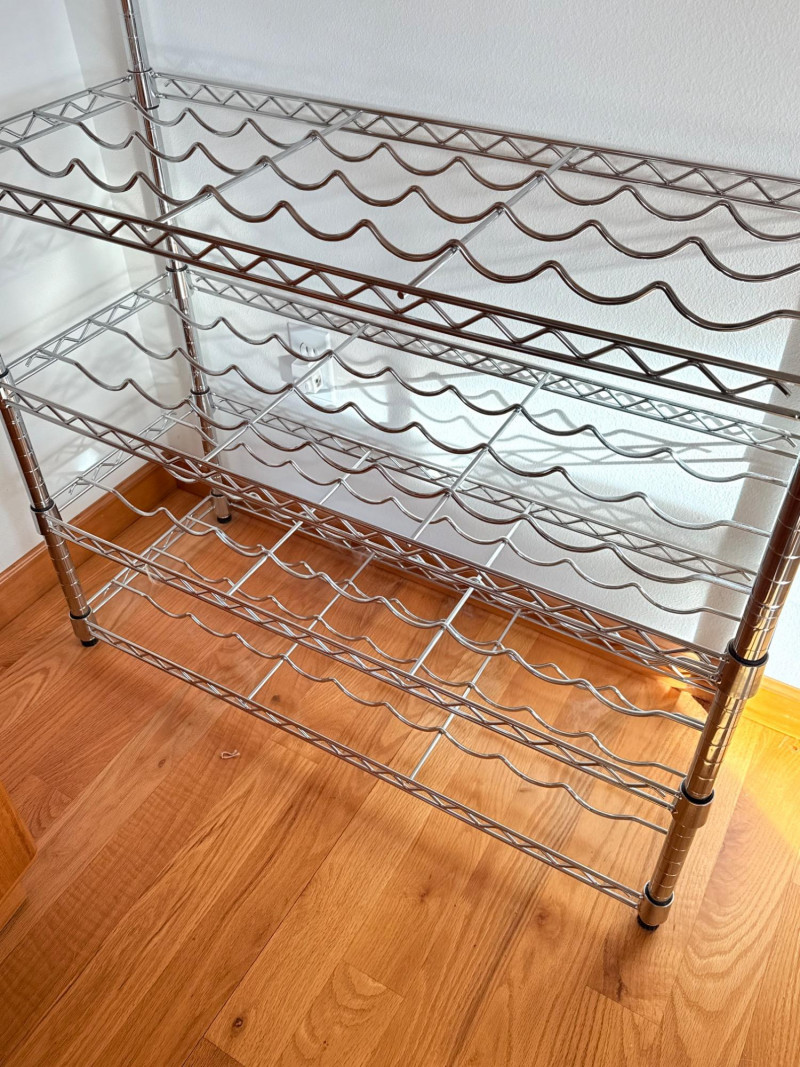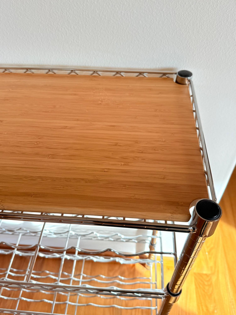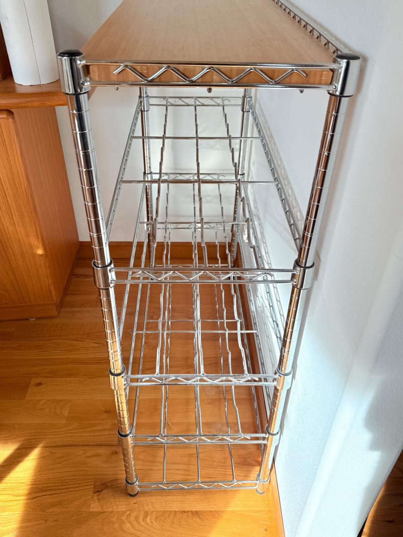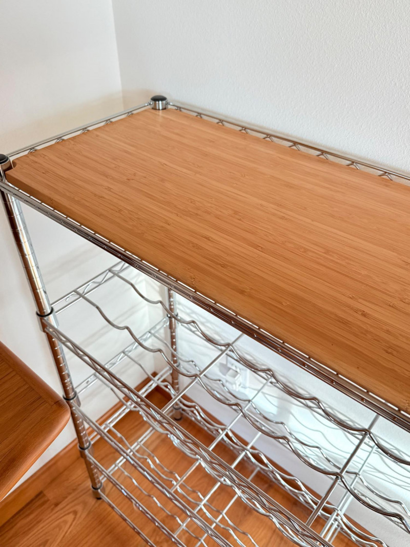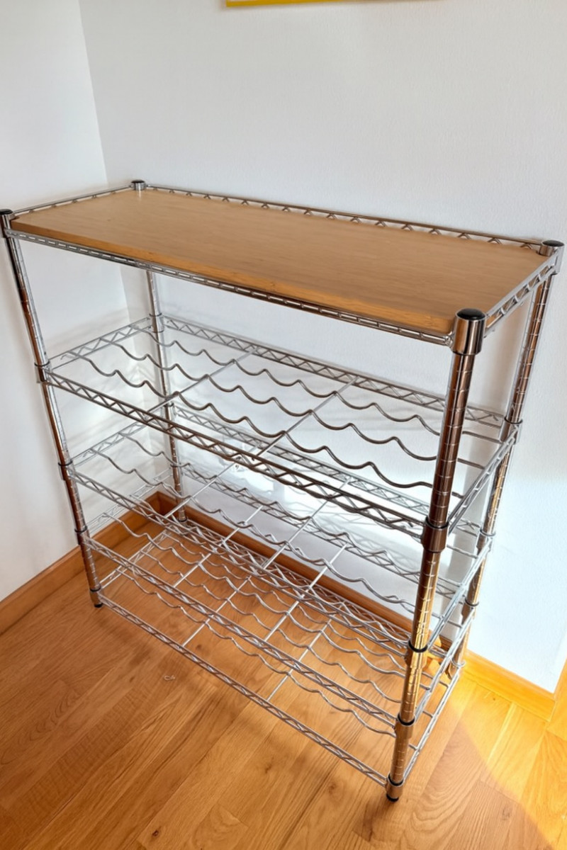 Lot # 121 - Chrome Wine Display Unit with Wood Top – 4-Tier Bottle Rack