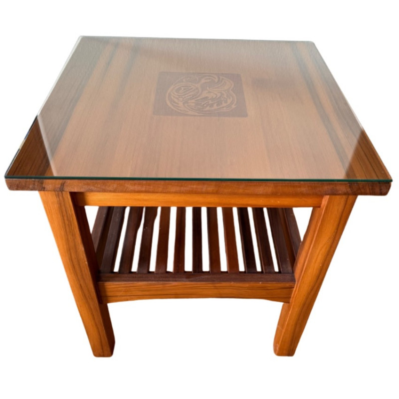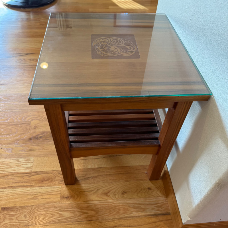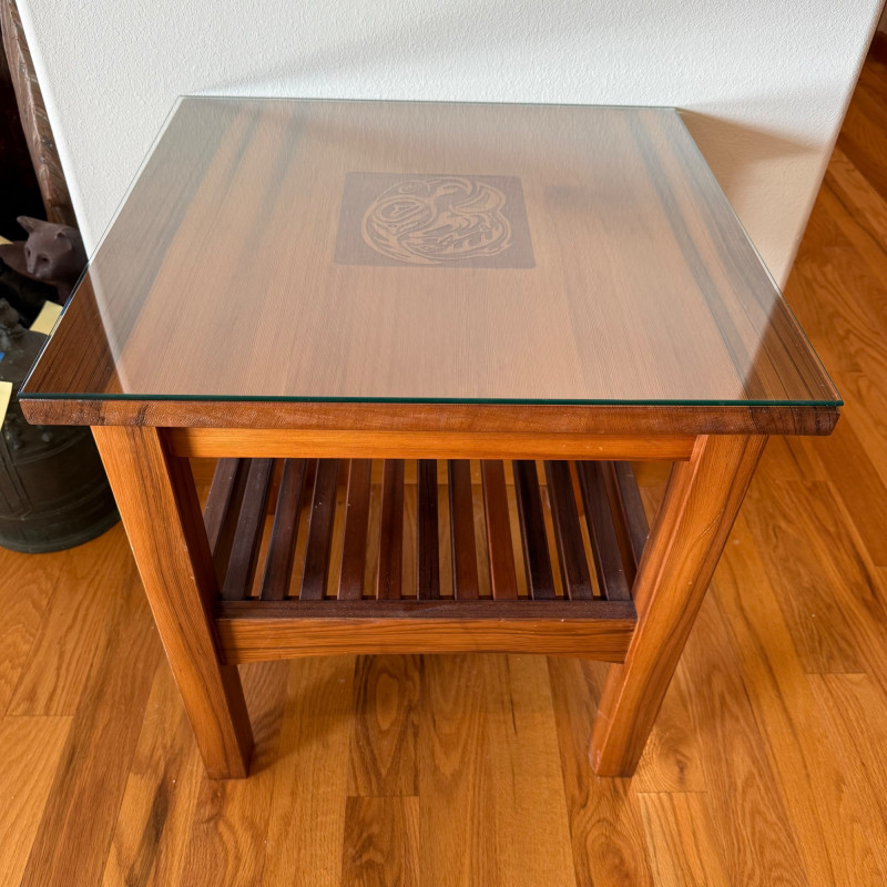 Lot # 139 - Jamestown S’Klallam Handmade Wood & Glass Side Table