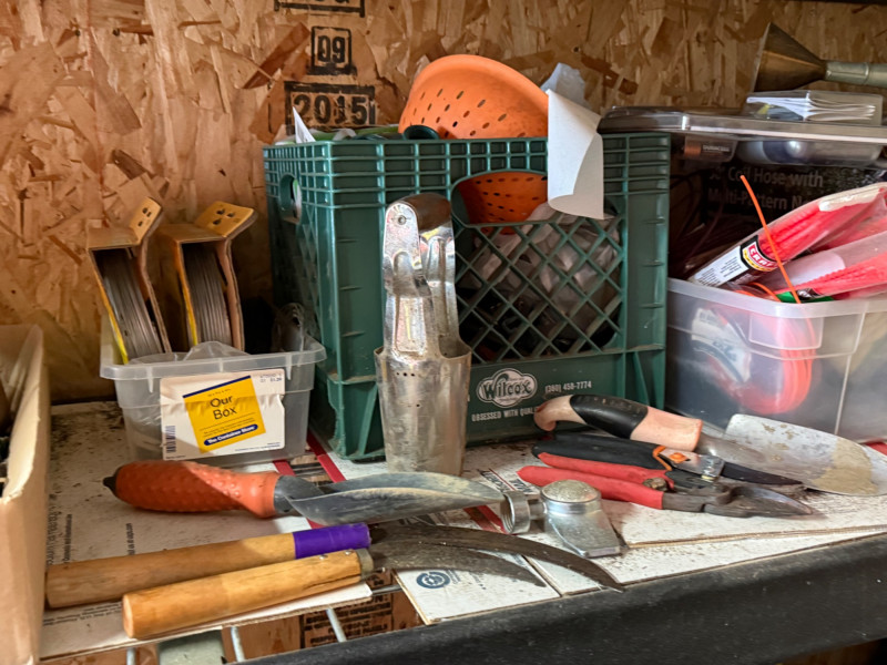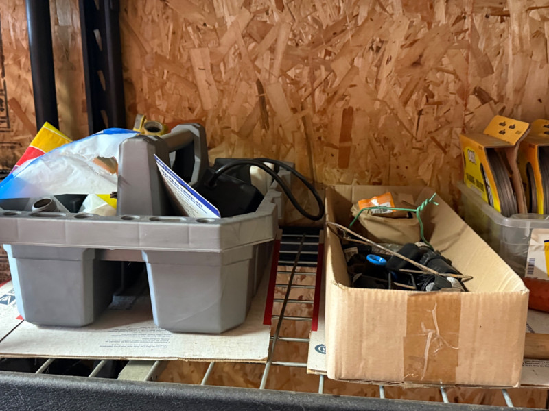 Shelving units are not included in this lot. Tools, containers, and equipment only.