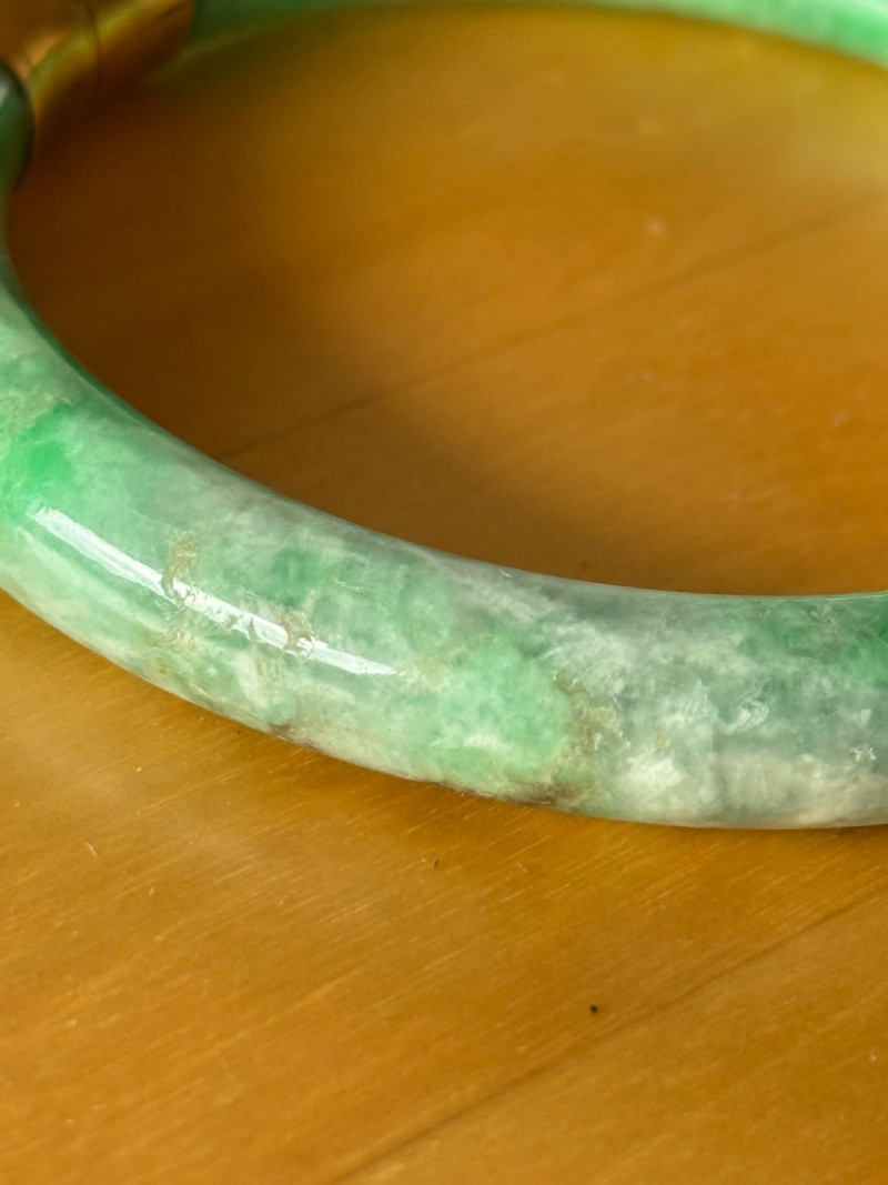 Lot # 163 - Chinese Green Jade and Gold Dragon Bangle Bracelet