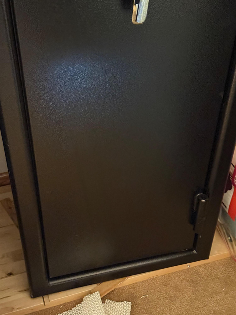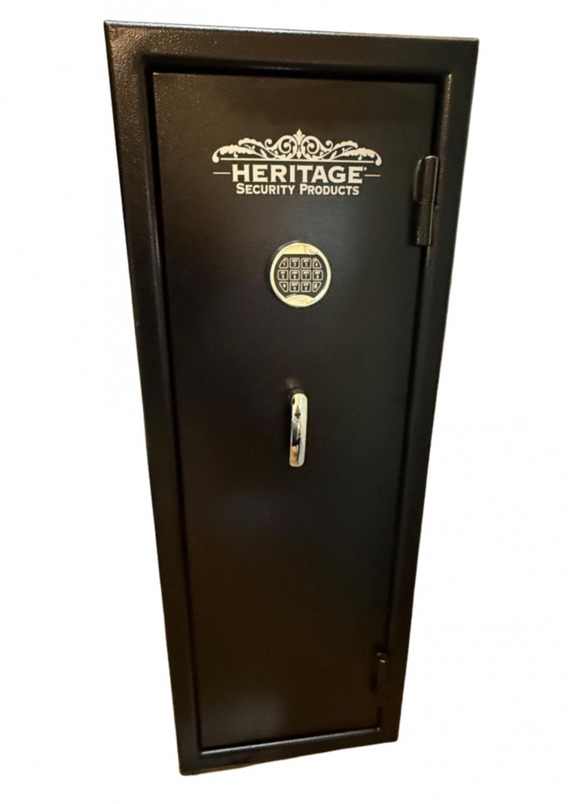 A Heritage Security Products electronic safe with a sleek matte black textured finish and a chrome handle. Equipped with a digital keypad lock, this safe offers reliable protection for valuables, documents, or collectibles. Its clean, professional look makes it suitable for home, office, or closet storage. Features: Brand: Heritage Security Products Type: Electronic Digital Safe Color/Finish: Matte black Lock Type: Electronic keypad (no code provided) Steel construction Compact design fits neatly in closets or small areas