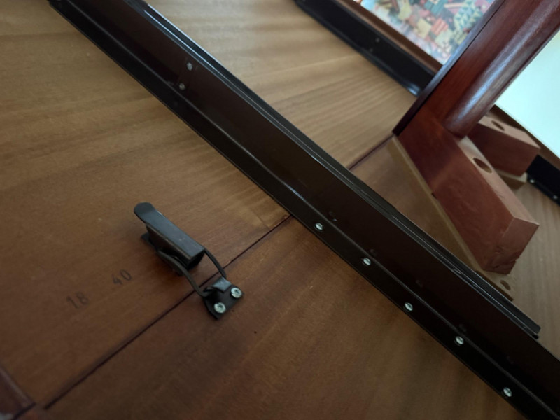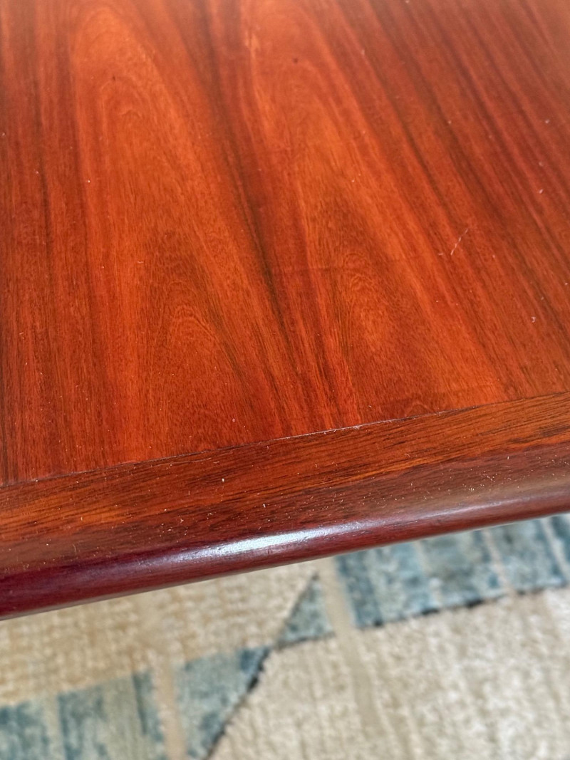Material: Rosewood-veneered hardwood (Palisander finish), upholstered seats